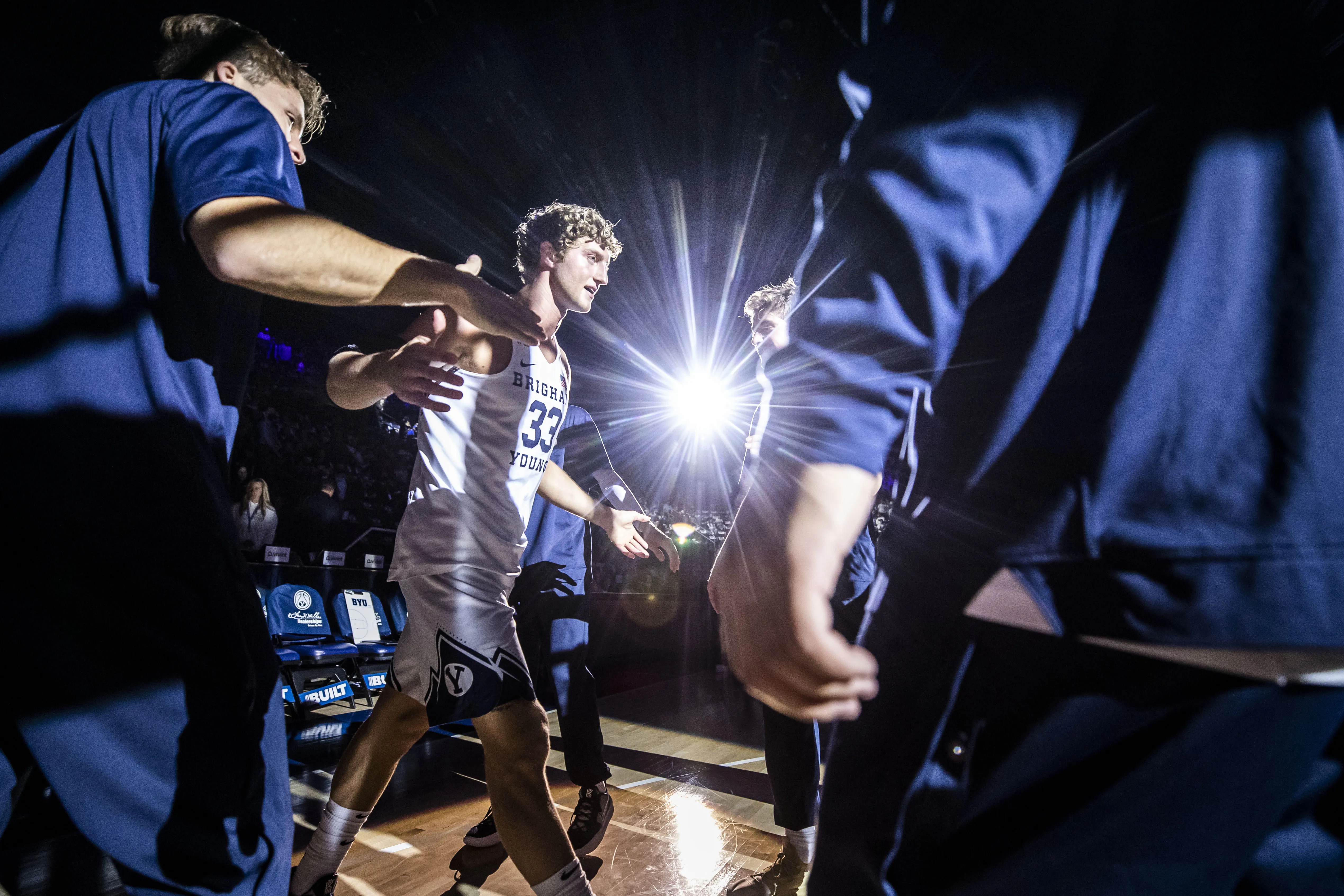 BYU forward Caleb Lohner gets some welcomed to the court pregame.