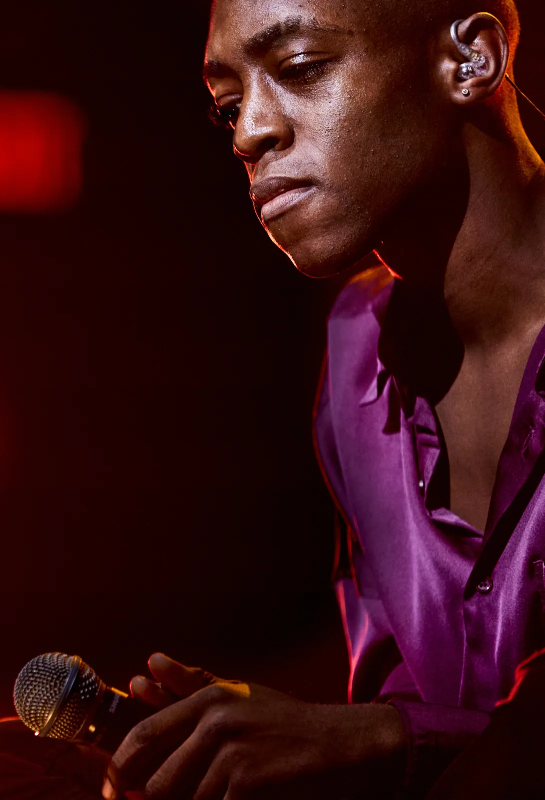 Marlon Atari, a senior at Berklee College of Music, takes a moment on stage after his performance during The Music of Billie Eilish at the Berklee Performance Center on December 2, 2021.