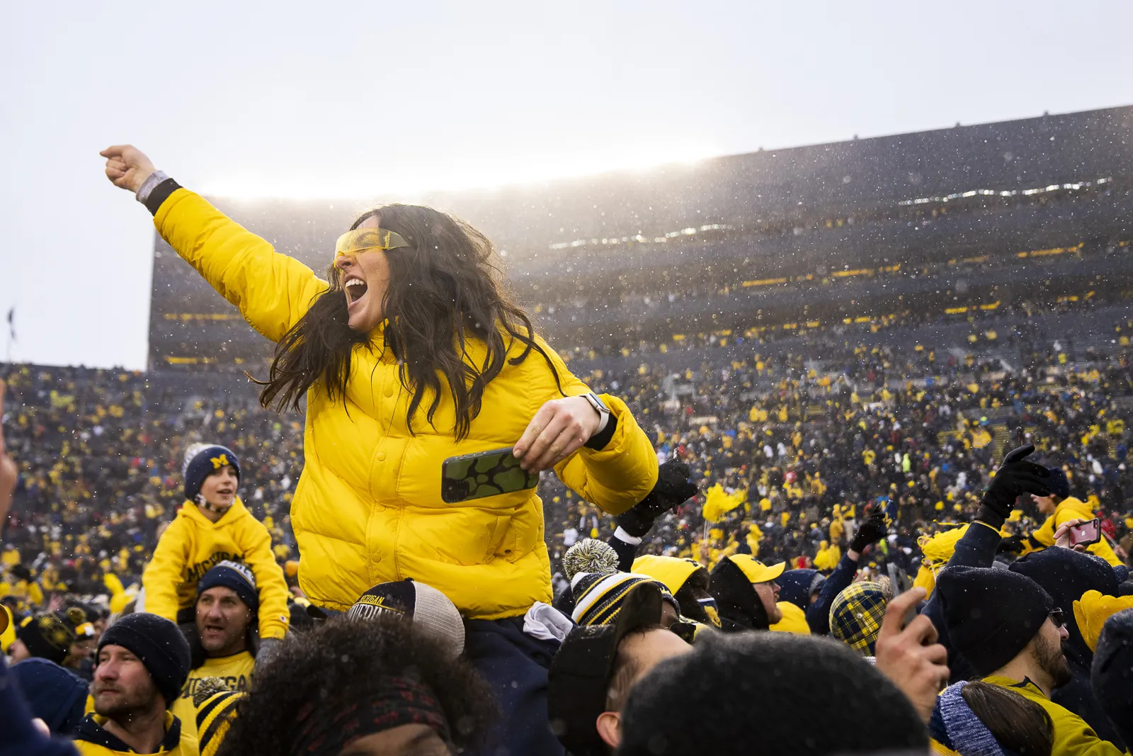 University of Michigan fans stormed the field after the Wolverines beat the Ohio State Buckeyes 42-27 in Ann Arbor, Michigan on November 27, 2021.