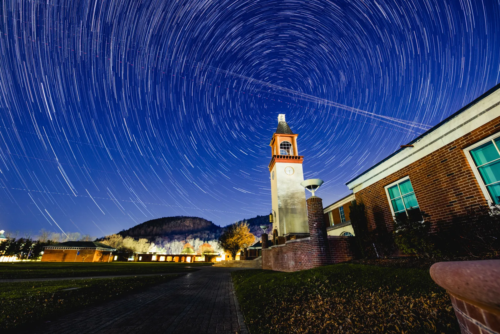 Star trails over the Arnold Bernhard Library in Quinnipiac’s Mount Carmel Campus on November 28, 2021.