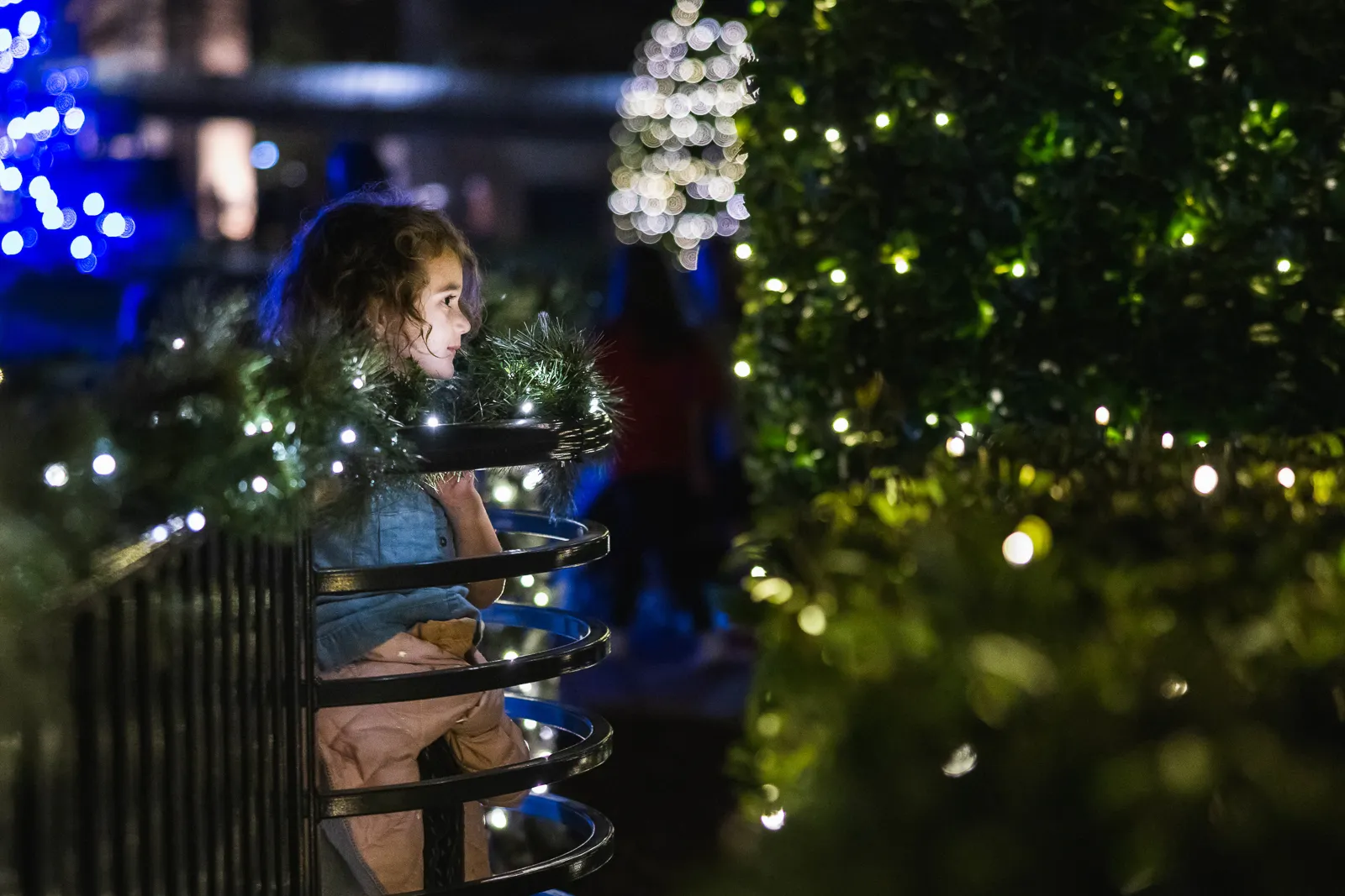 A candid photo of a child enjoying the lights of the Christmas Lighting celebration.