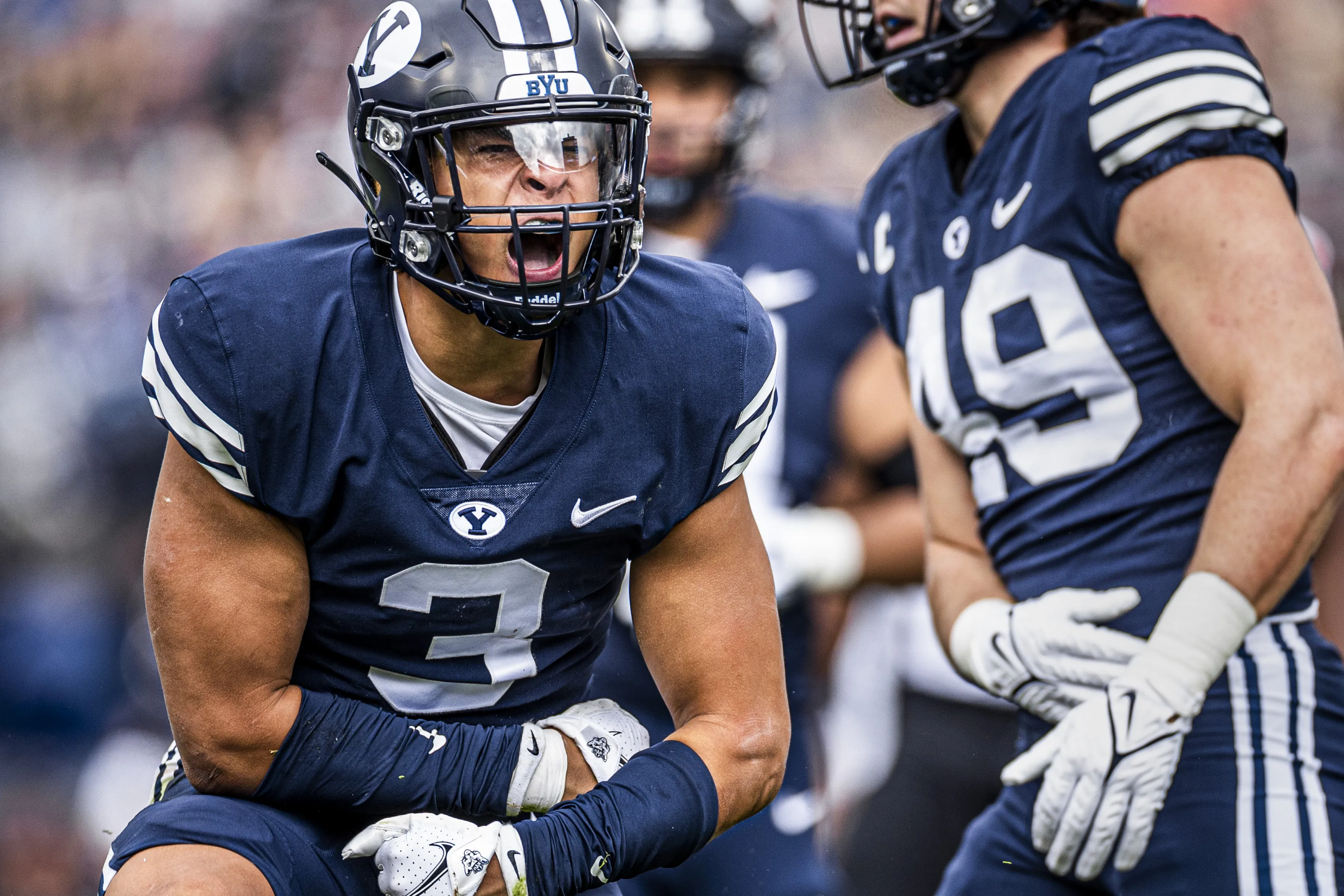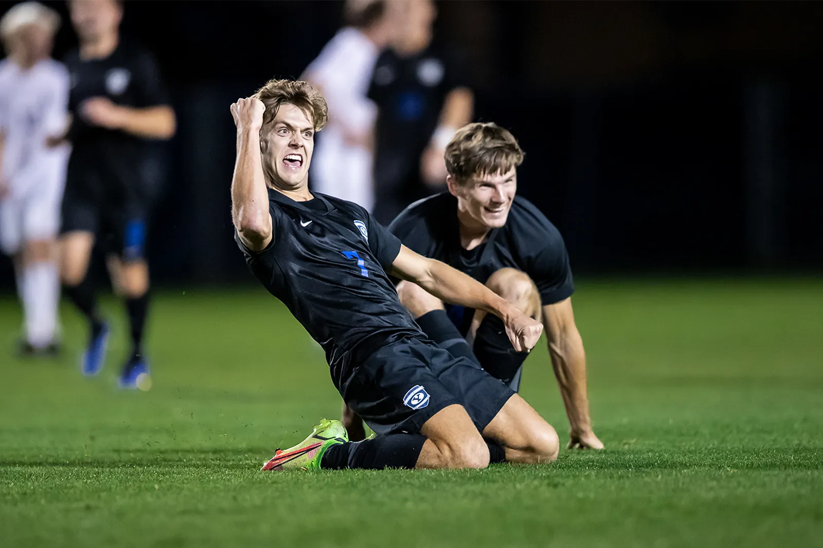 Southern Virginia University's Number 17, Adrean Howard, hypes up the crowd at Homecoming game beating Greensboro College 31-14. Go Knights!