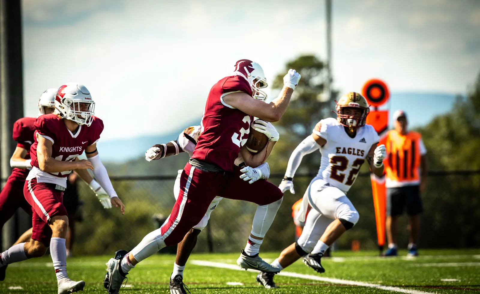 The SVU Knights make a break downfield during their first home game vs the Bridgewater Eagles.