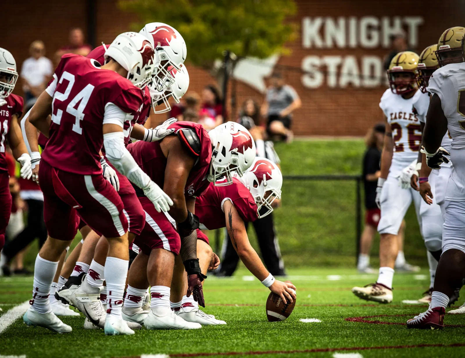 The SVU Knights line up for a scoring drive during their first home game vs. the Bridgewater Eagles.