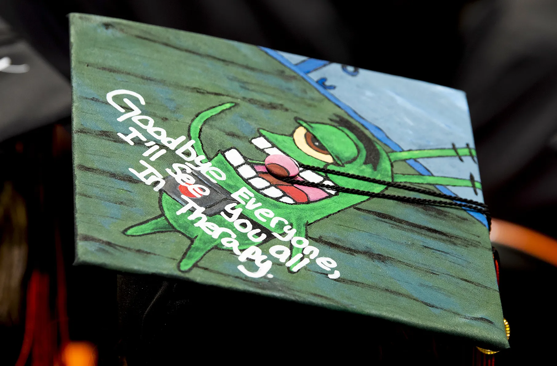 A creative grad cap during Campbell's 2019 December Winter Commencement.