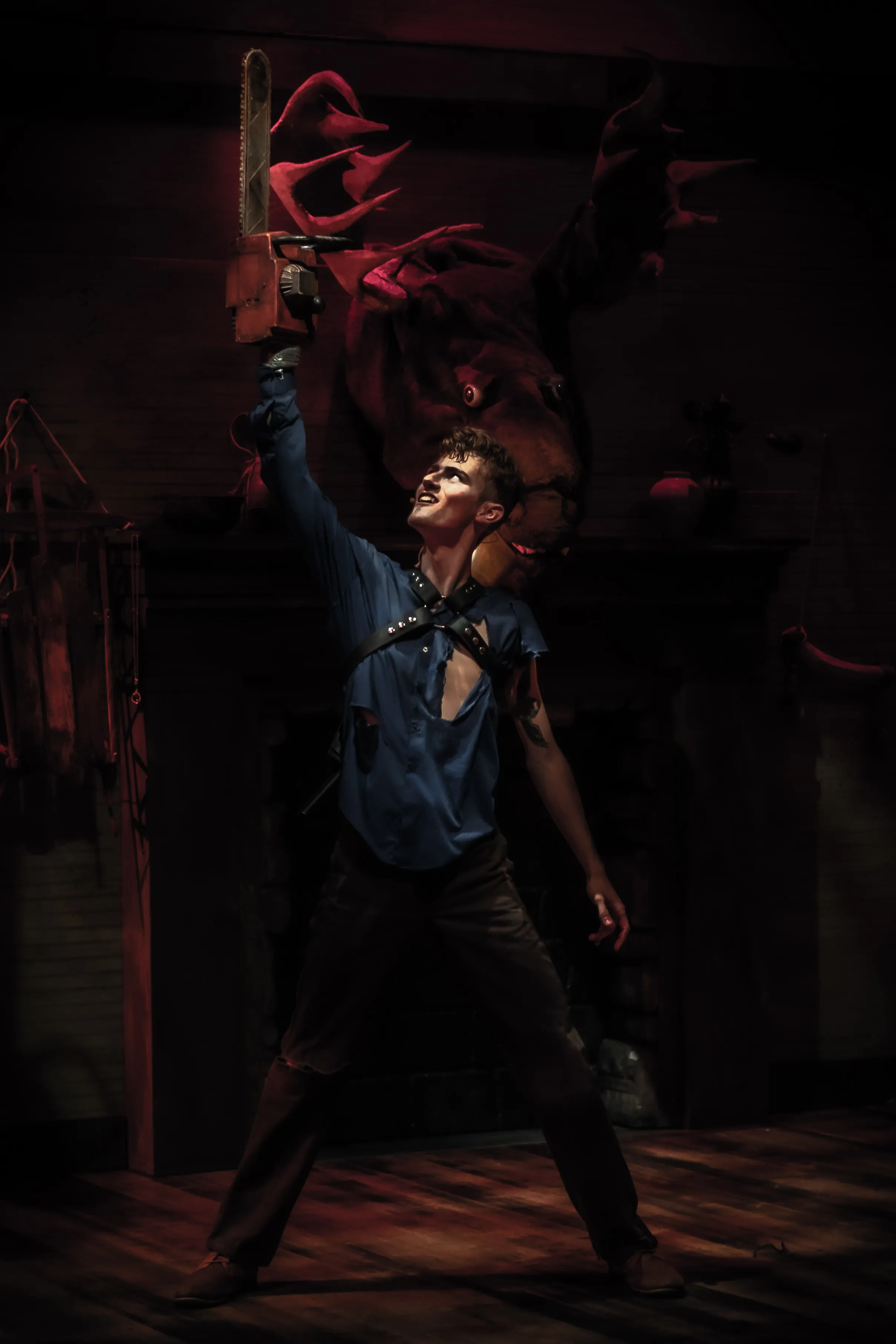 Ash (Cobi Tappa) reveals his new weapon in the fight against the evil Kandarian Demons unleashed during The University of Wisconsin-Madison Department of Theatre and Drama's production of "Evil Dead, The Musical."