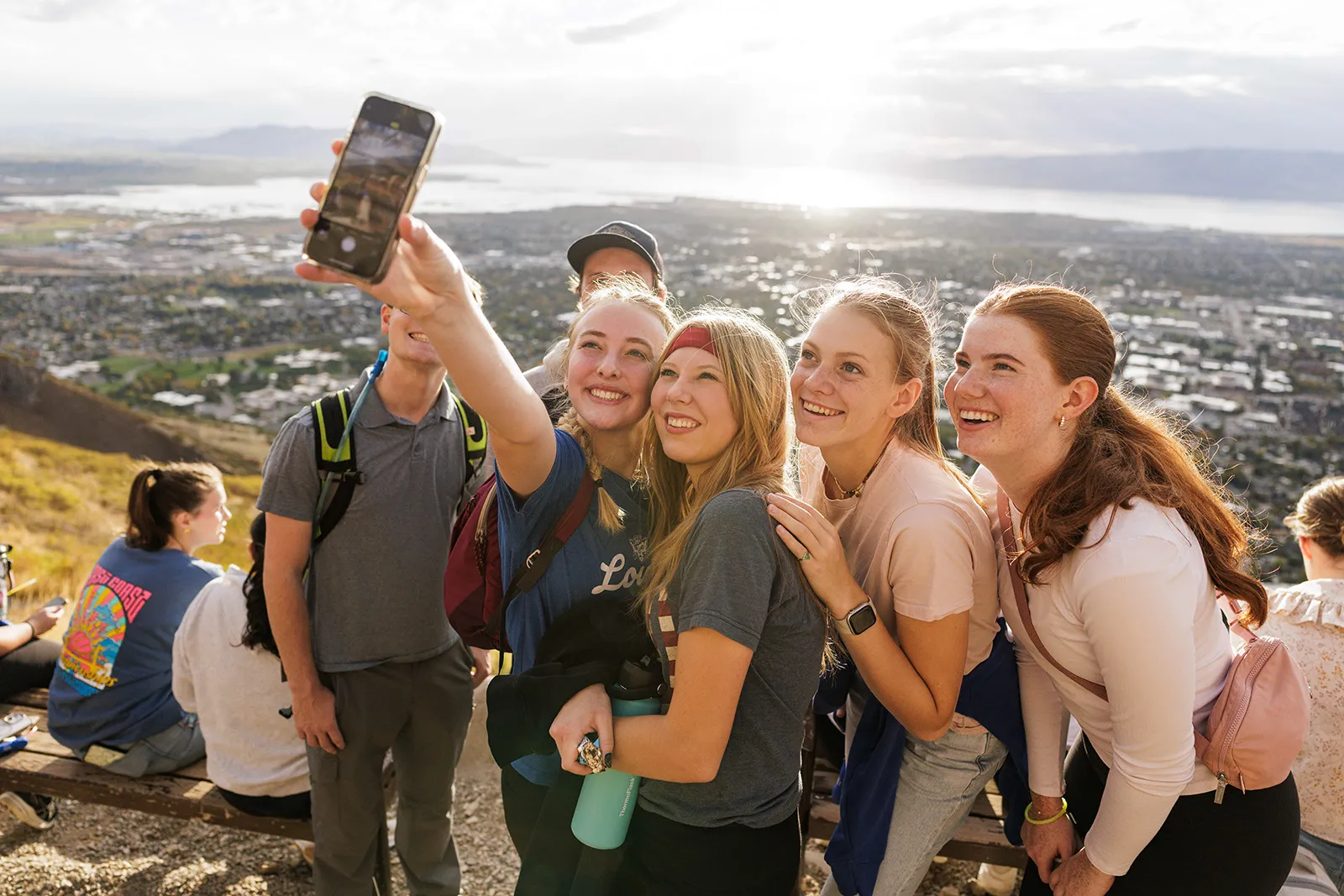 Students take a selfie after participating in the annual homecoming hike.