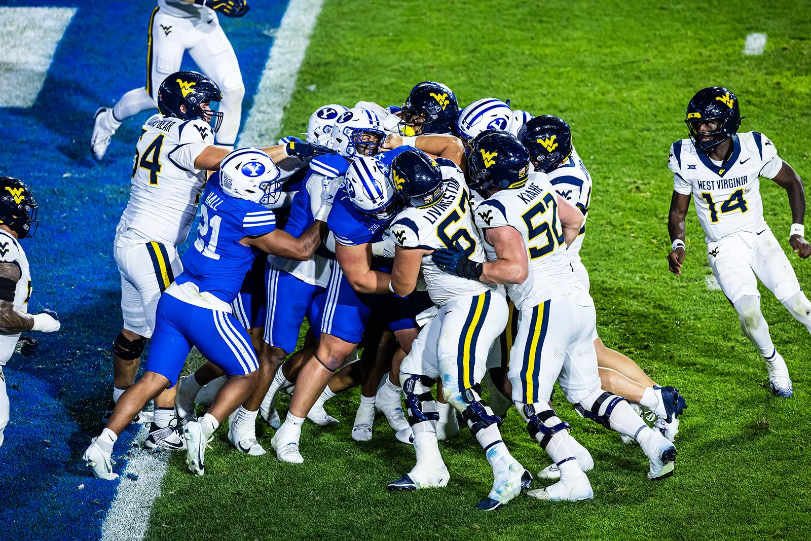 Number 3 took on two defenders, catching the ball and somehow took it in for a touchdown. Taken on Oct 18th, 2025.