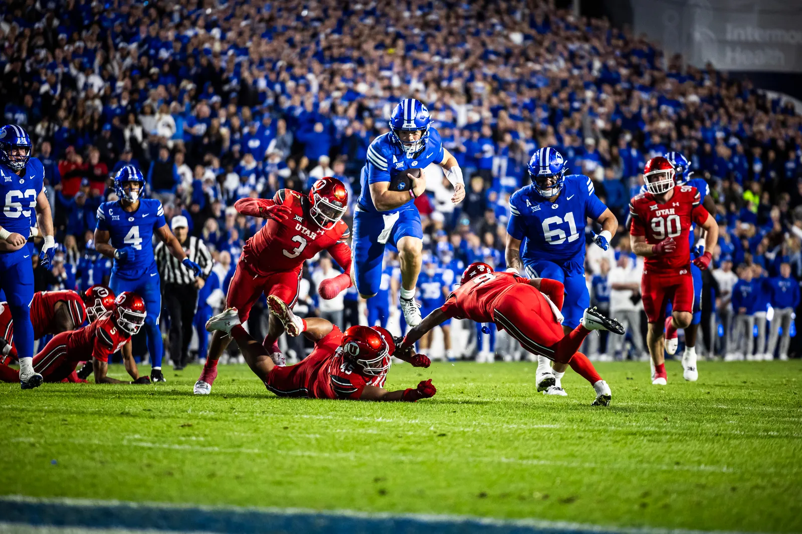 Bear Bachmeier leaping through players to score the most beautiful touchdown against school rival on homecoming.