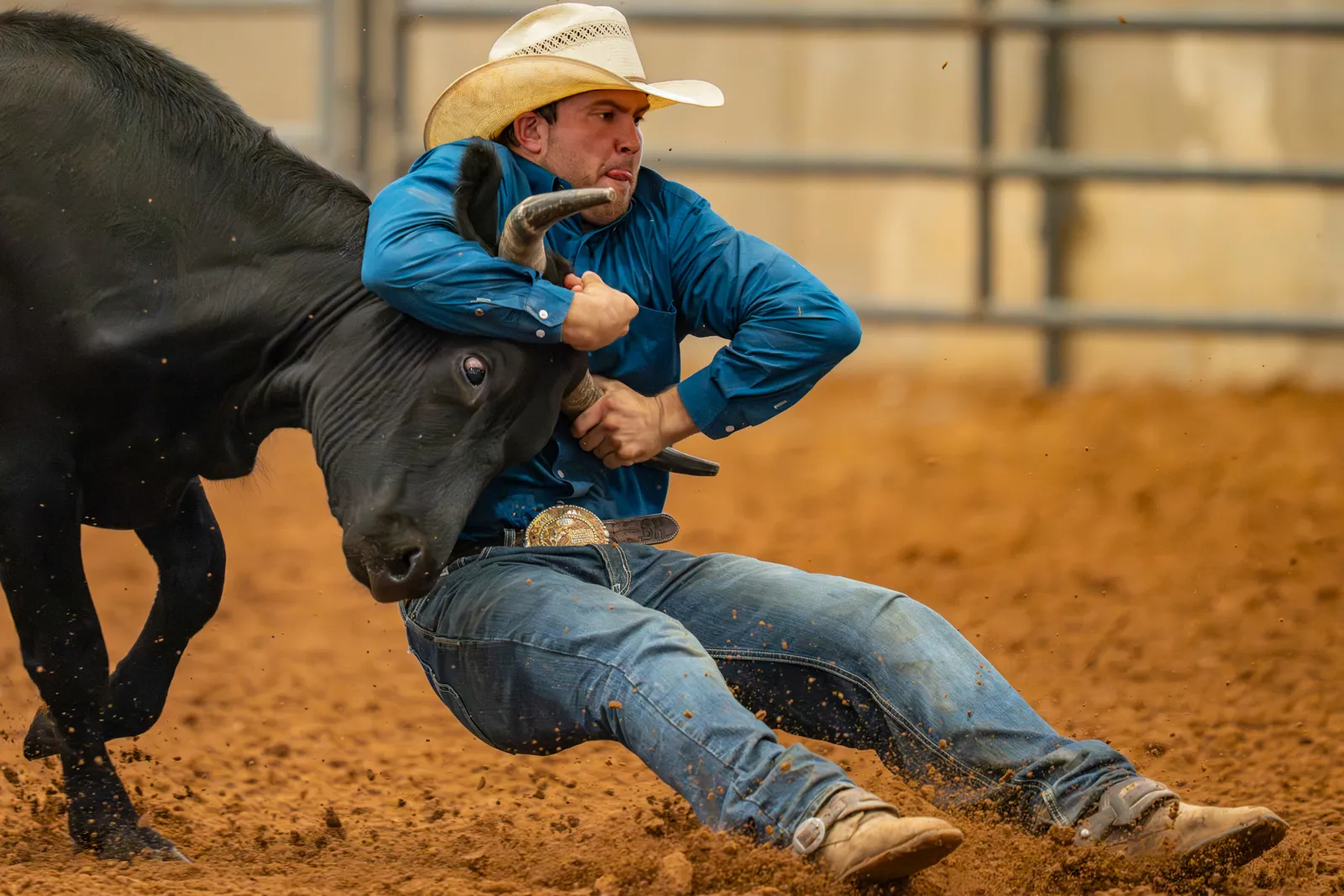 Boyd Hanagriff participates in steer wrestling at the 2025 All Aggie Rodeo on Saturday, Sep 13, 2025 in College Station, Texas.