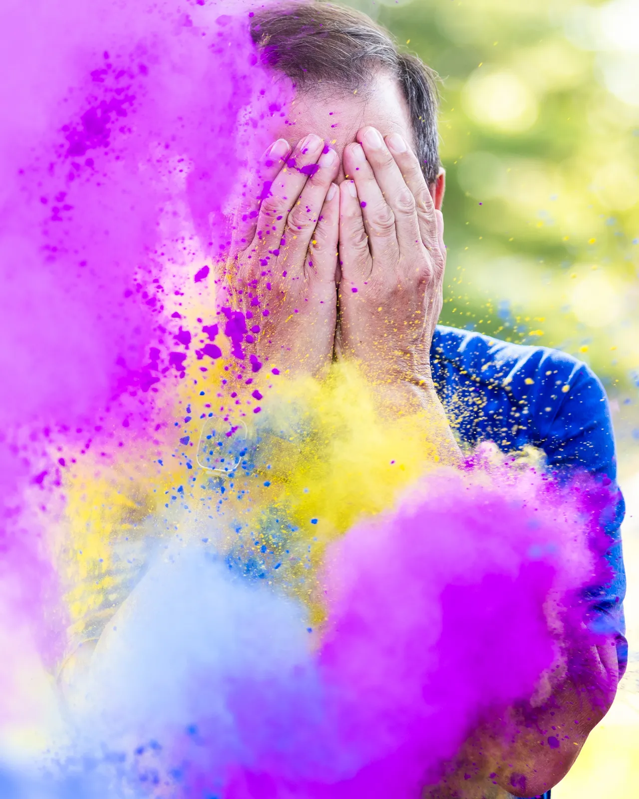 Honors college dean awaits a hefty dose of paint prior to the annual 5k Color Run