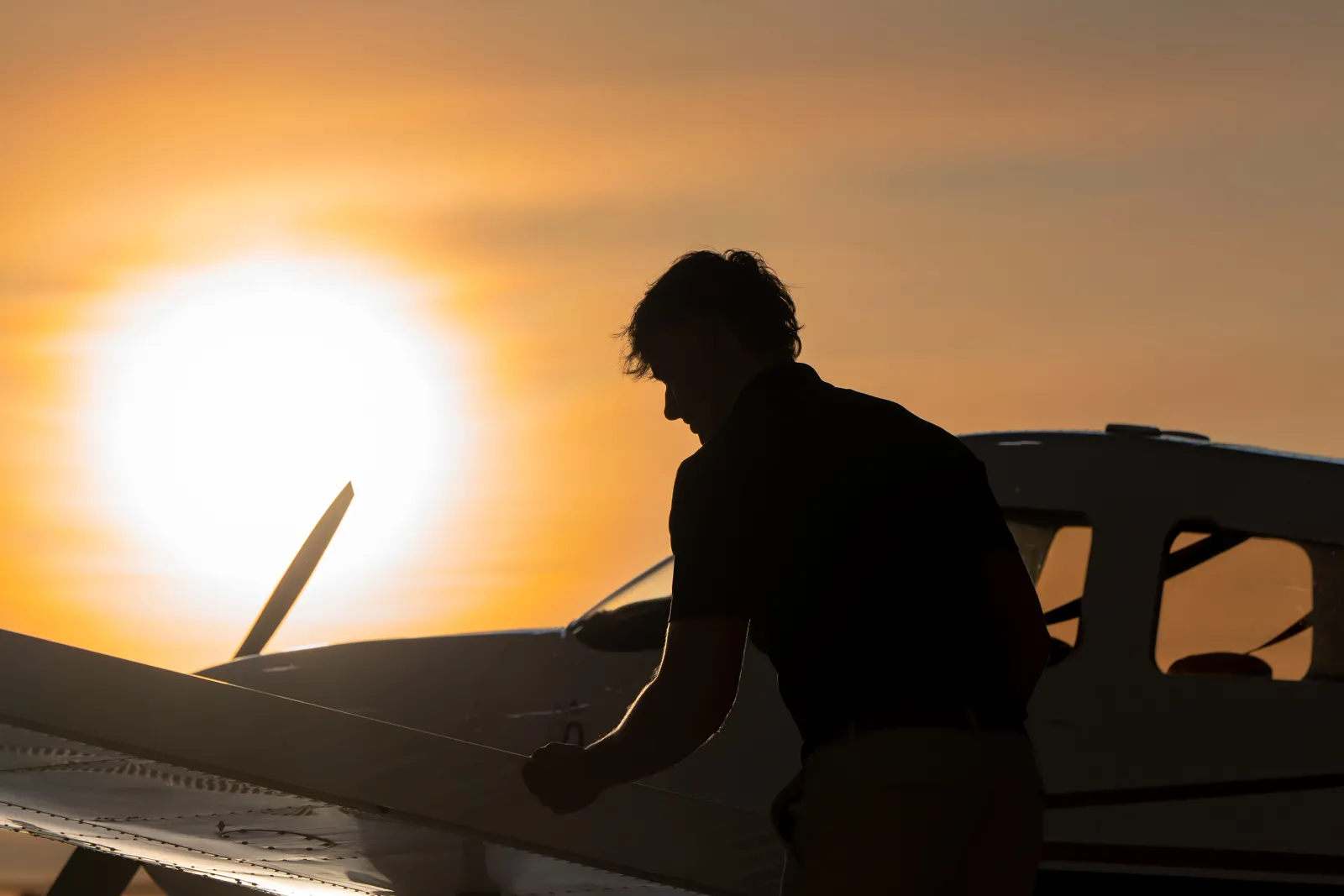 A Commercial Aviation student preflights his aircraft prior to that day's lesson.