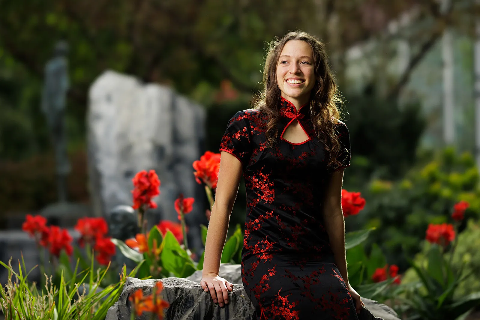 Portrait of a student who won a pristine Chinese award. The portrait was taken on campus.