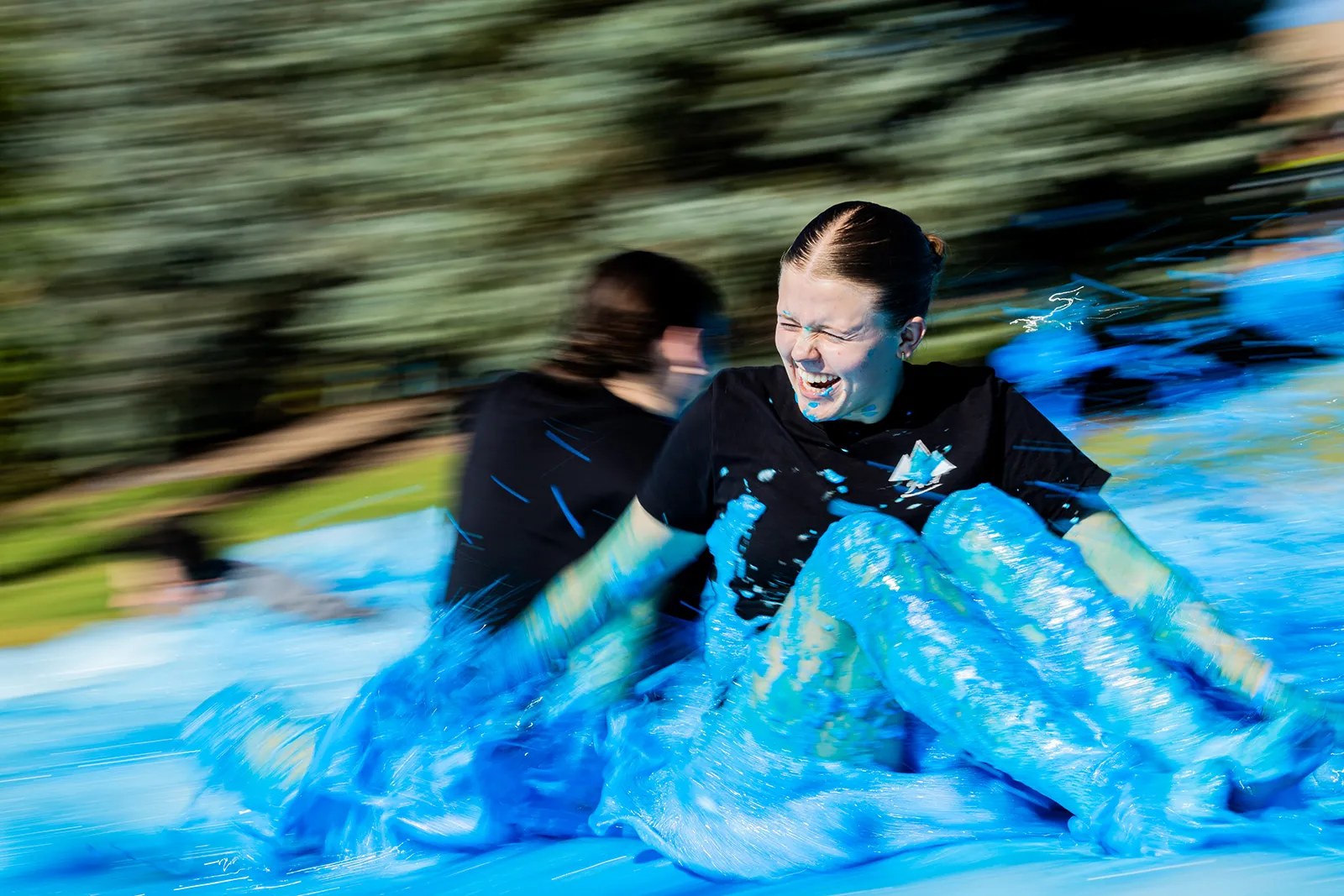 Extremely close up shot of a Marching Mizzou color guard member's eye.