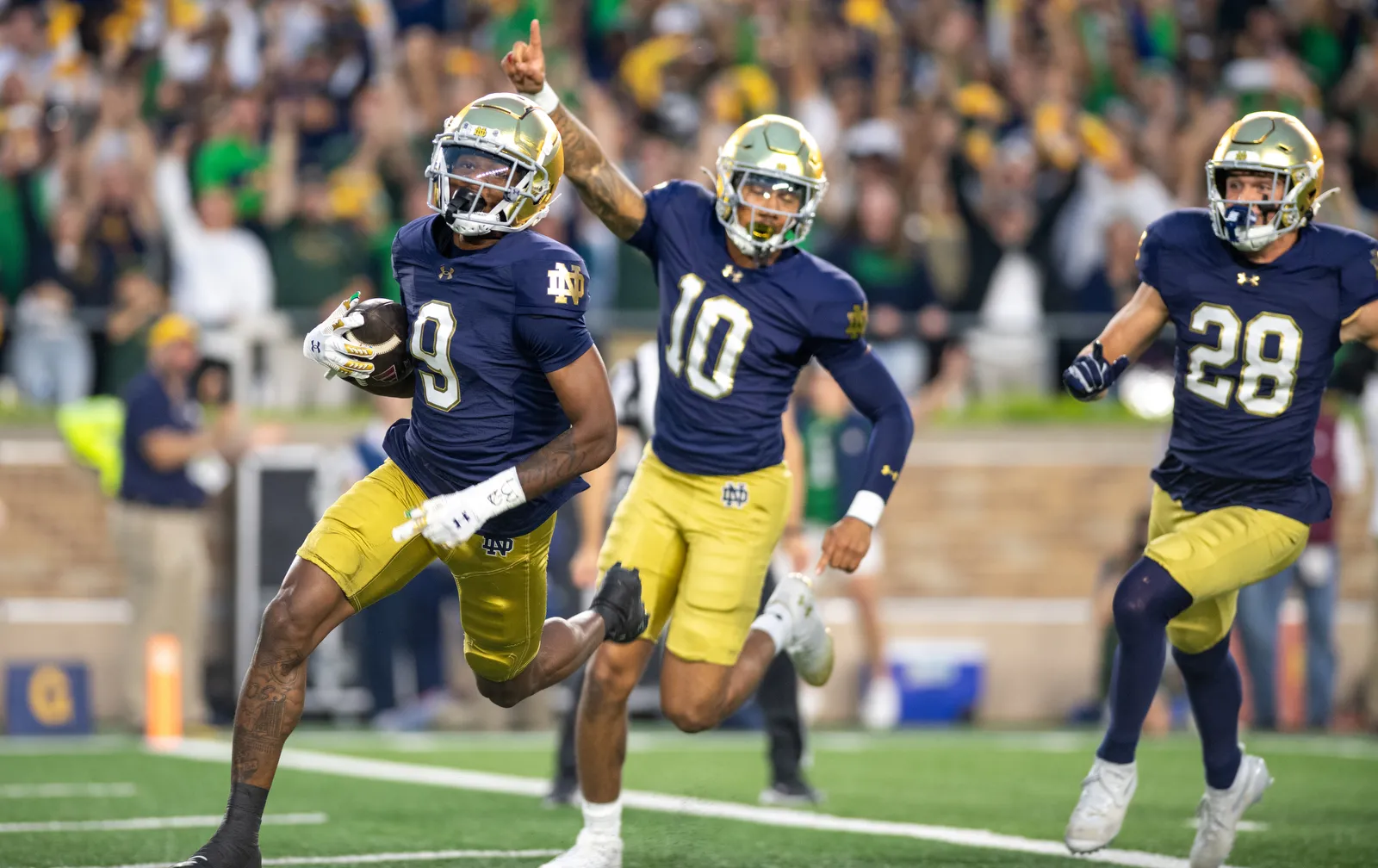 Tae Johnson (9) returns a blocked punt for a touchdown against Texas A&M.