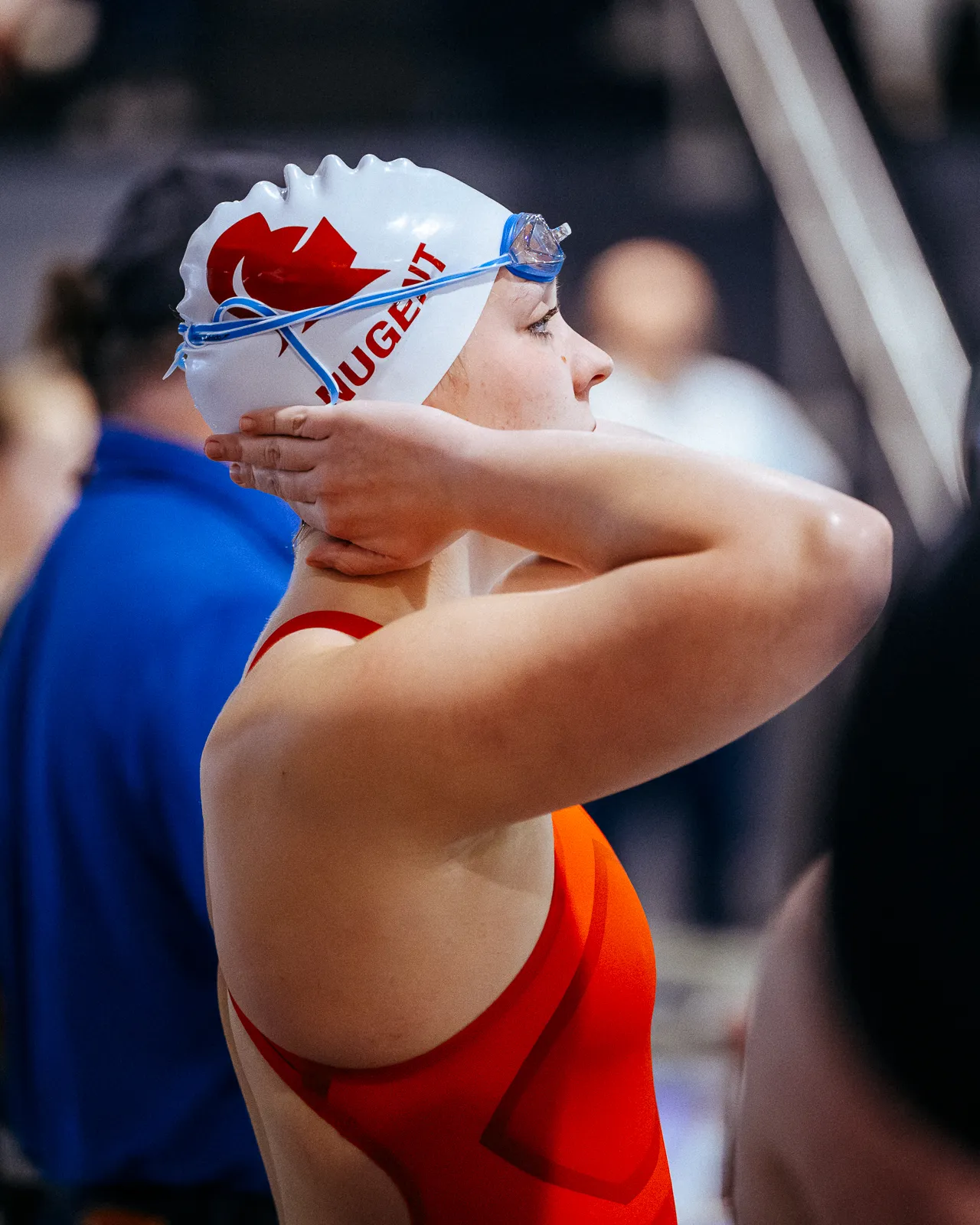 Event 1 of the first session of Independent South Conference Championships. Rylee Nugent swims the 500 freestyle. She is preparing for her race.