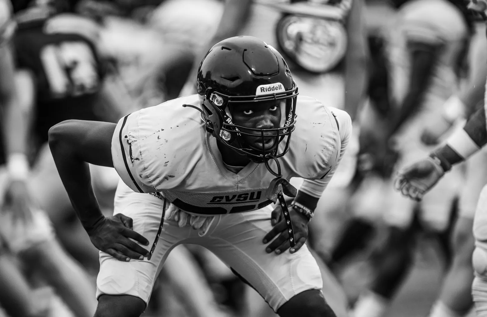 GVSU freshman wide receiver Will Korenstra stretches during the Lakers’ open football practice on Saturday, Aug. 16, 2025. Shot with a 400mm lens on Canon R6 M2.