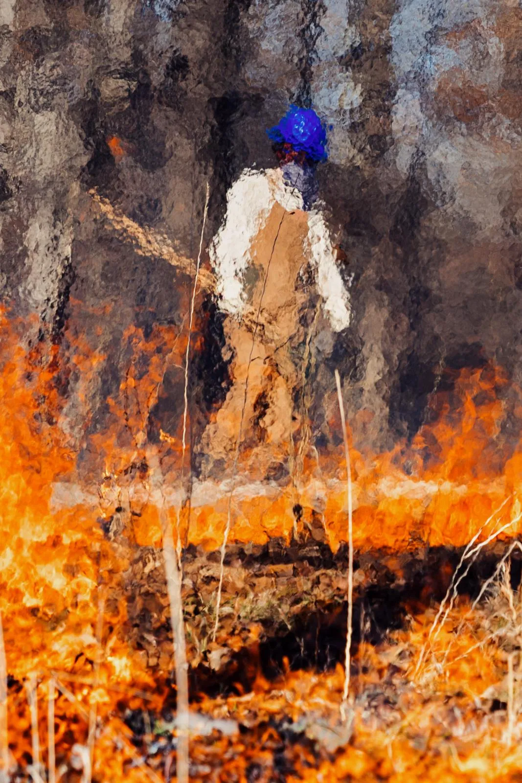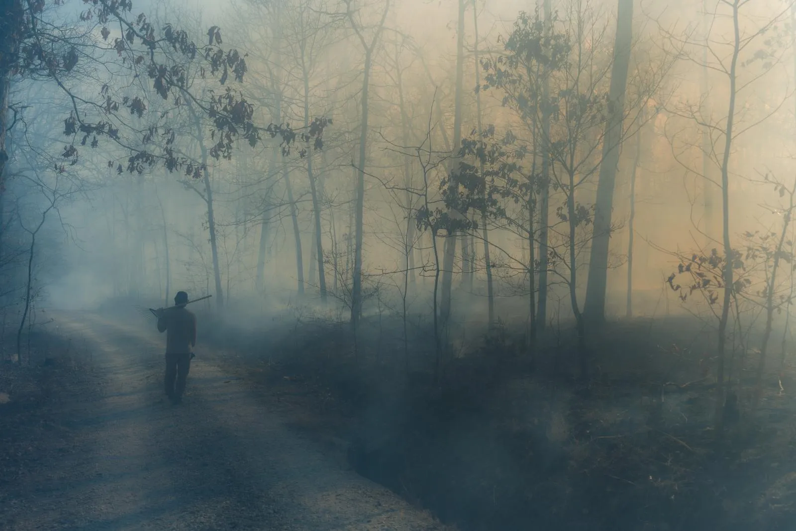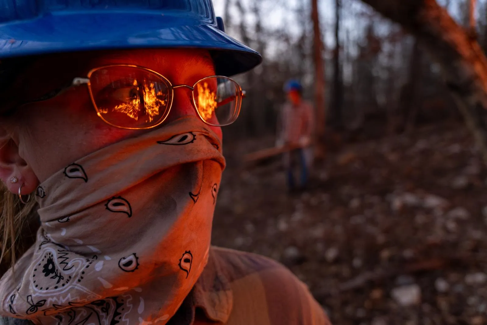 A student gazes onto the landscape as the fire perimeter for a controlled burn is created.