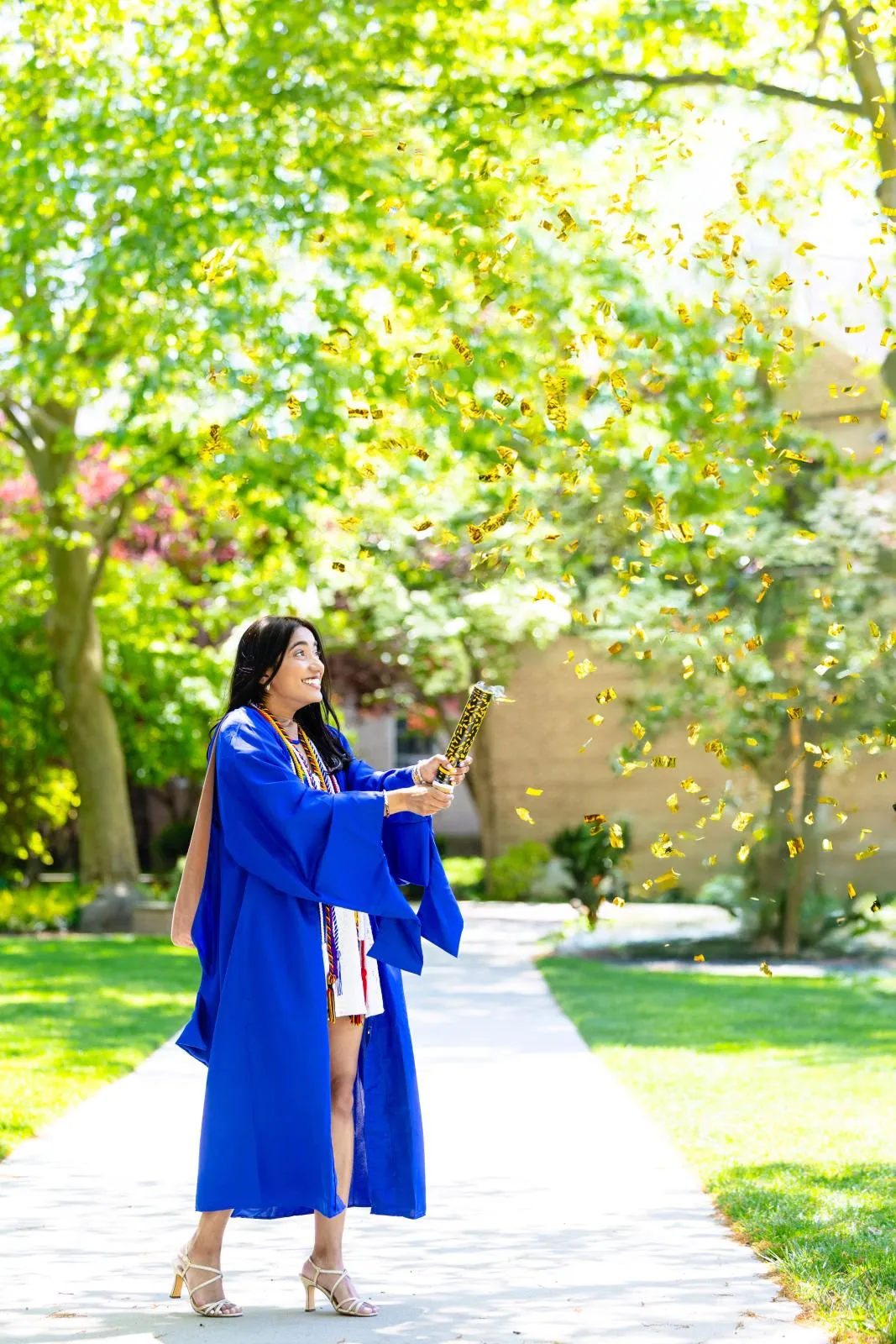 Soon-to-be graduate celebrates popping a confetti cannon before the ceremony.