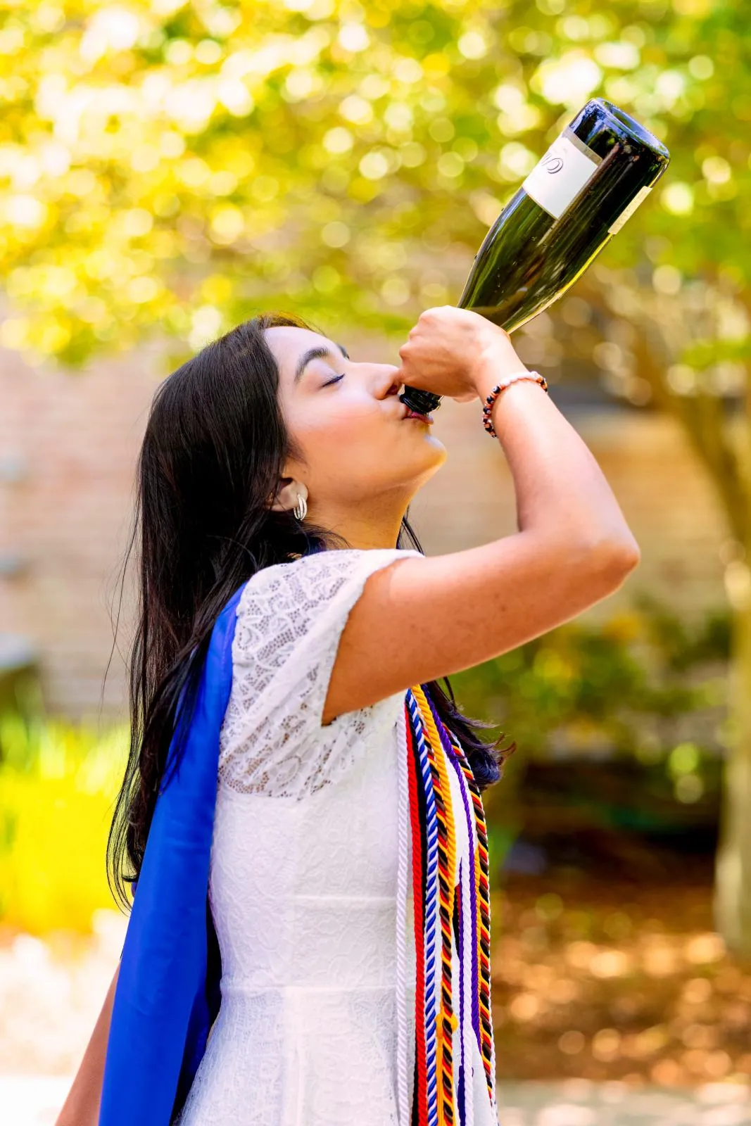 An outdoor toast to the end of her academic journey.