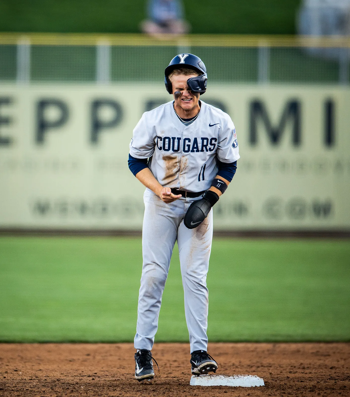Baseball player sliding to steal second base dislocates finger as he hits the bag. Taken right before the athletic trainer came and popped it back into place and he kept on playing.