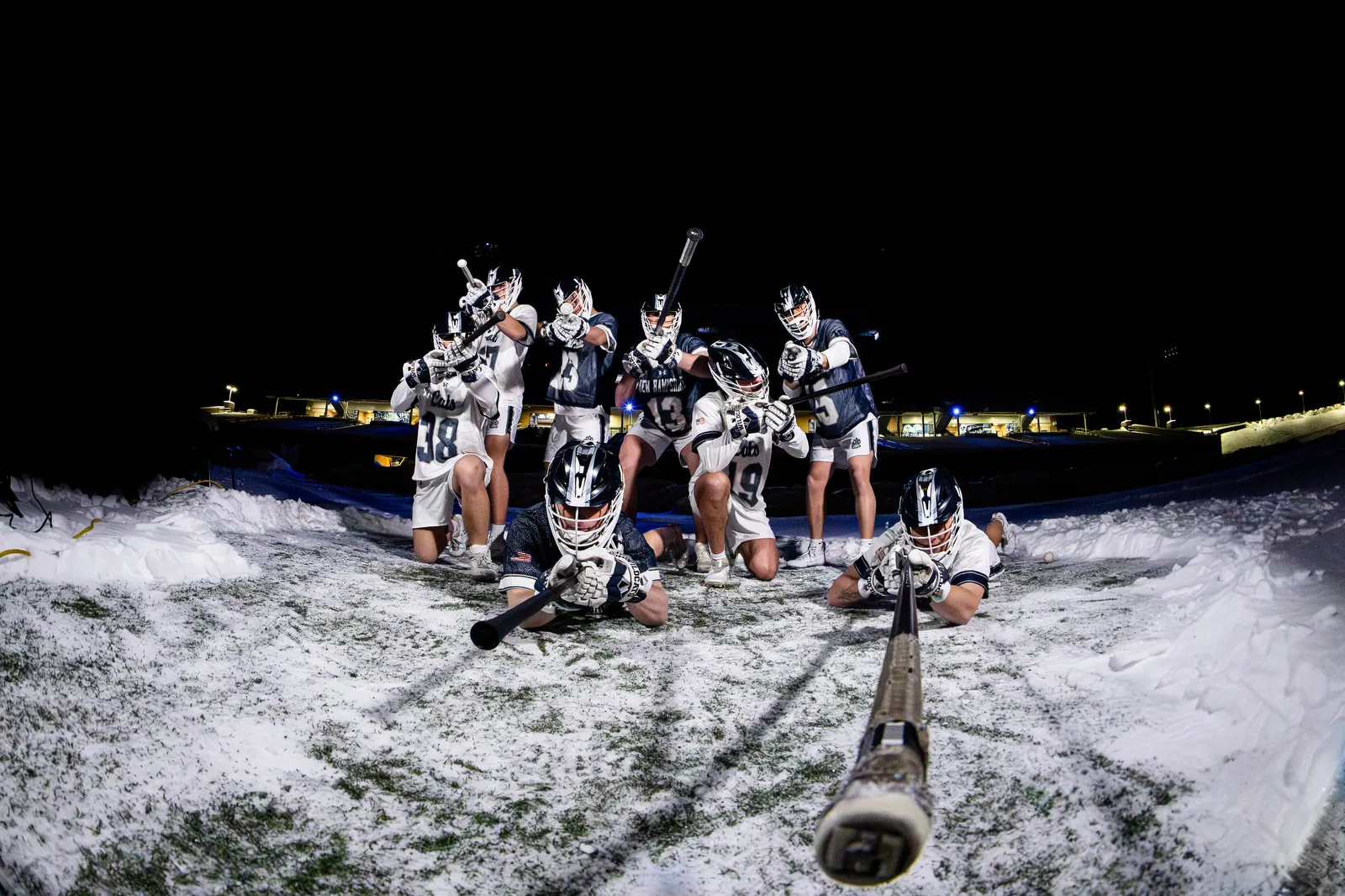 Members of the UNH Men's Lacrosse team pose for a picture during their 2025 Season Media Day on February 11th, 2025 at the Memorial Field in Durham, NH.