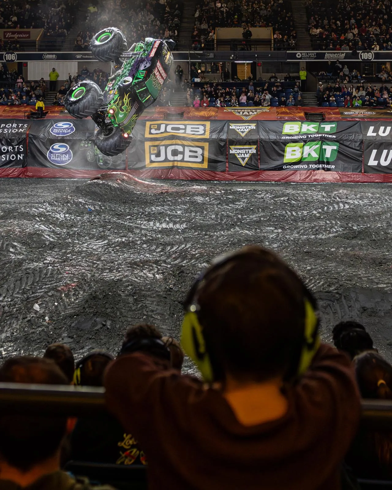 A child watches the Grave Digger monster truck perform a flip at Monster Jam. Taken at the DCU Center in Worcester, MA.