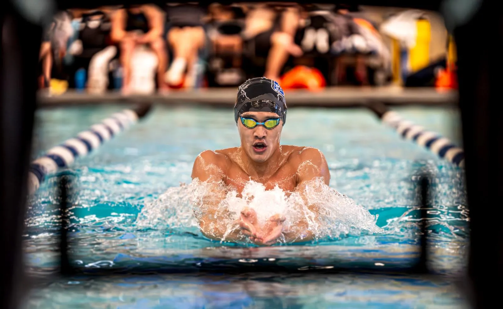 Grand Valley State swimmer in the final seconds of the breast stroke, powers to the finish on February 8th.