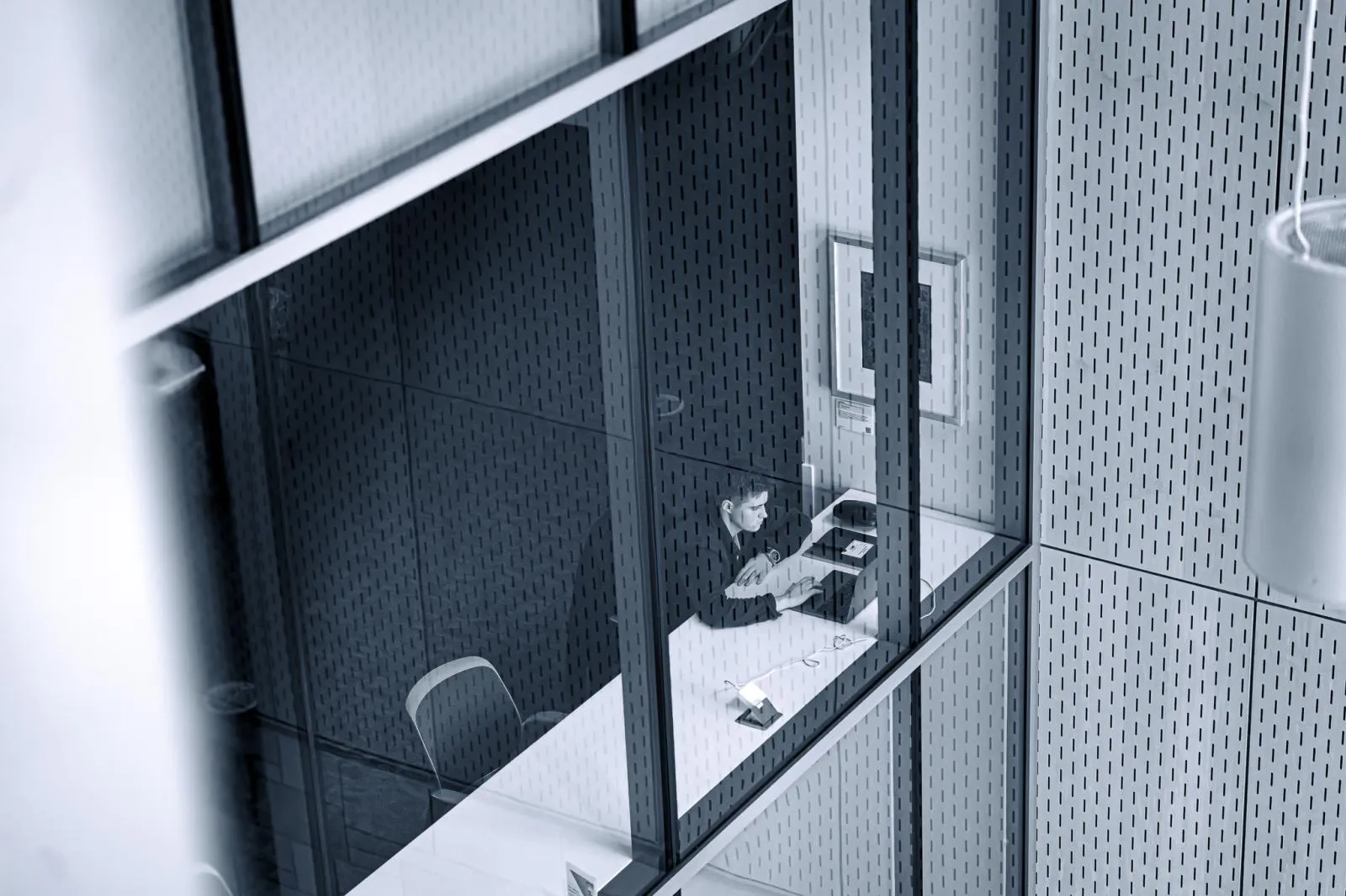 Captured from the third floor of the Mary Idema Pew Library, a student works on a laptop on February 5th.