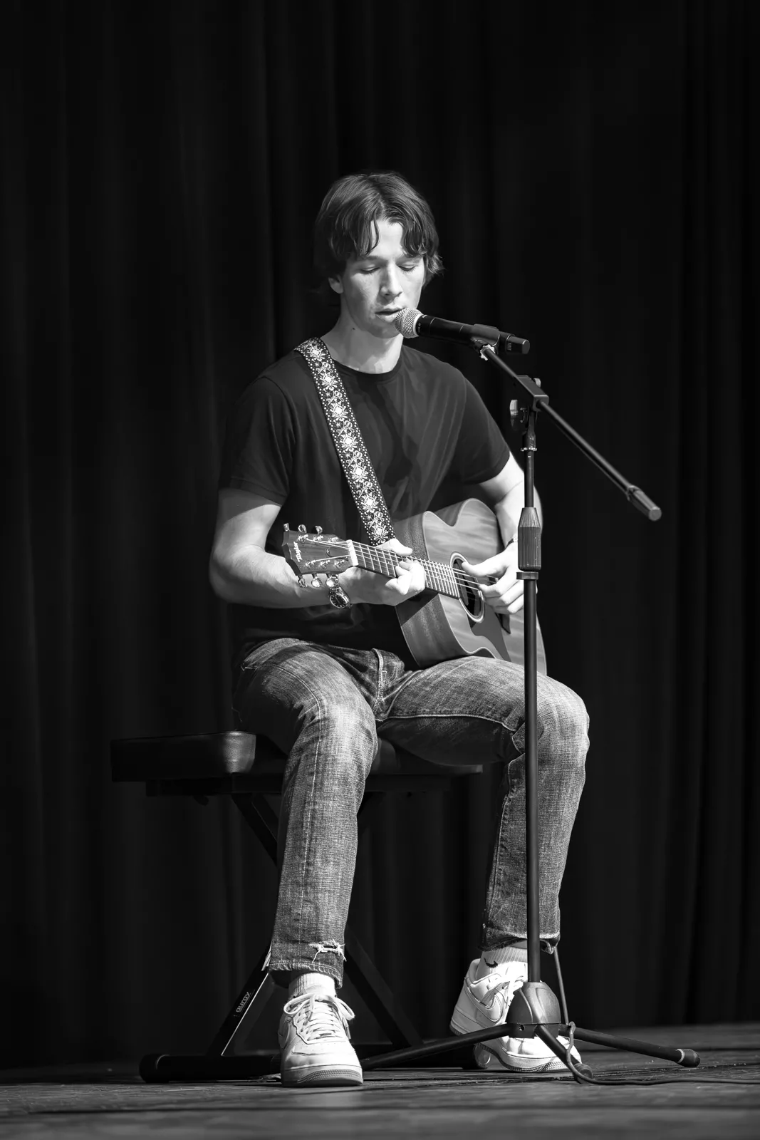 A student performs a song during the University of North Dakota's Talent Show