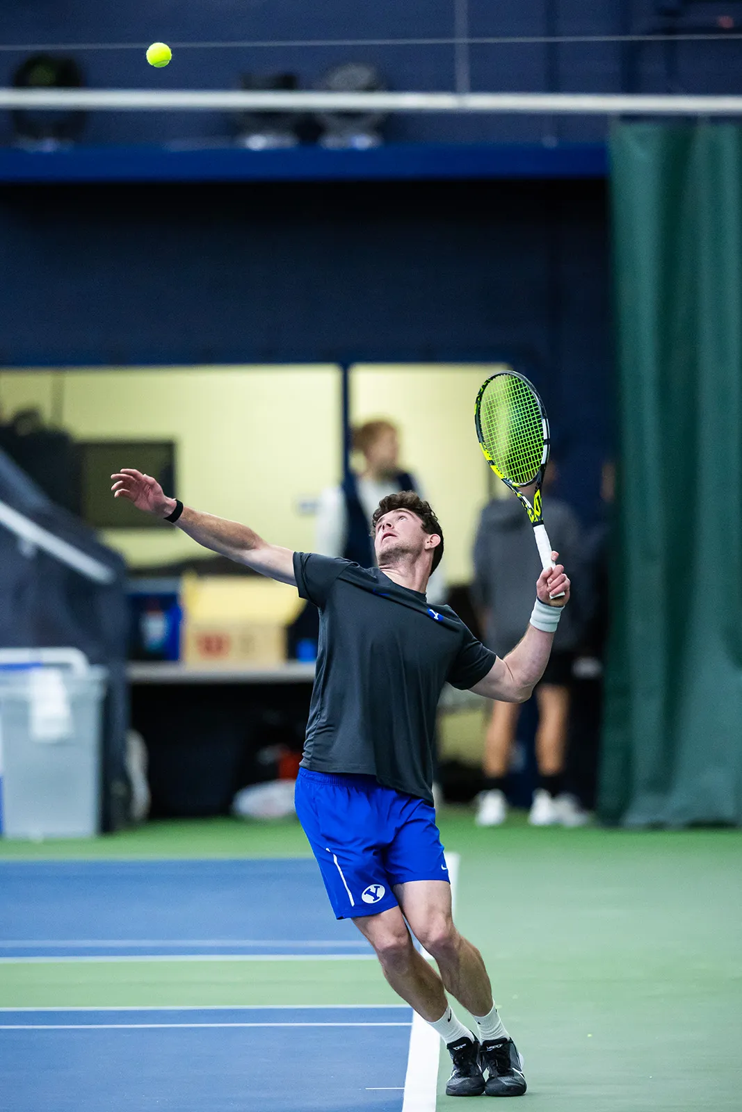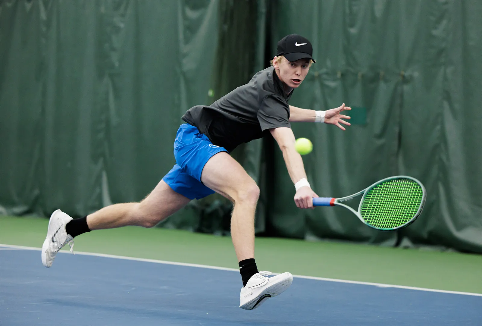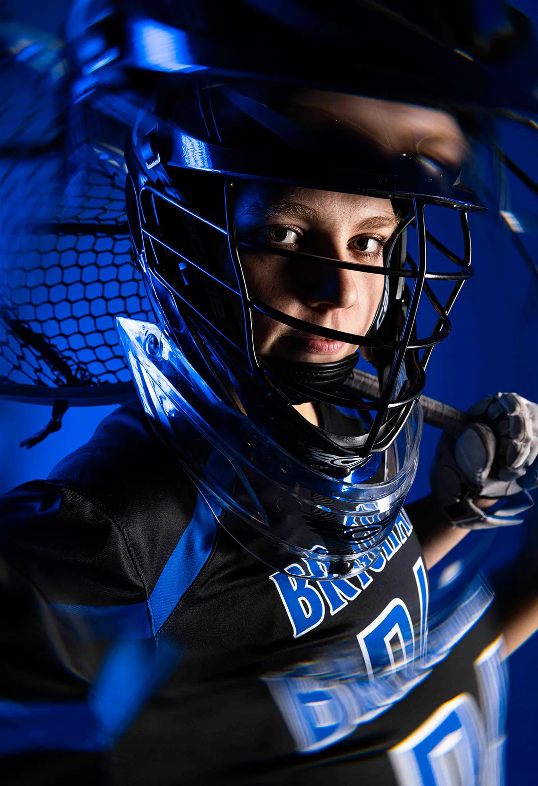 Lacrosse Player gets photos on a creative set during photoshoot.