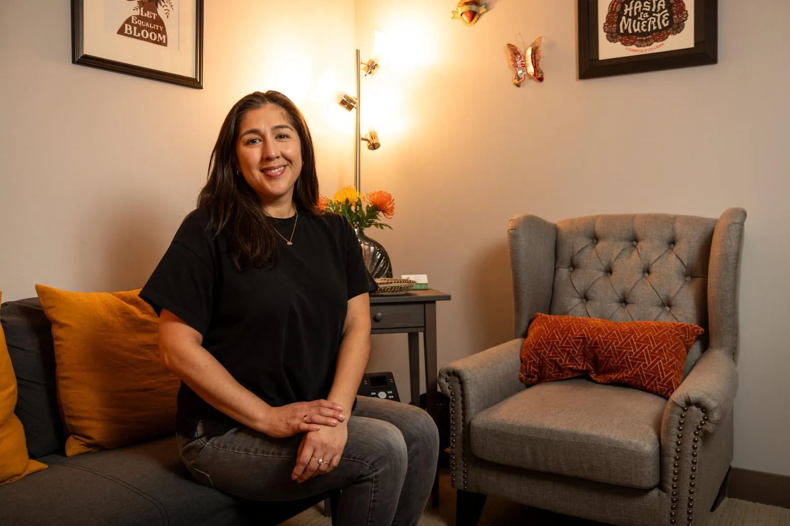 Bianca Wilson, LMFT, the counselor in the Well in the Bell Memorial Union, poses for a photo in her office on Jan. 16, 2025 in Chico, Calif.