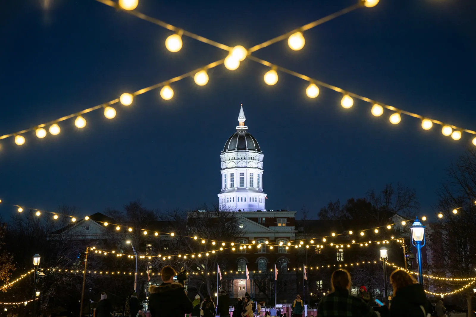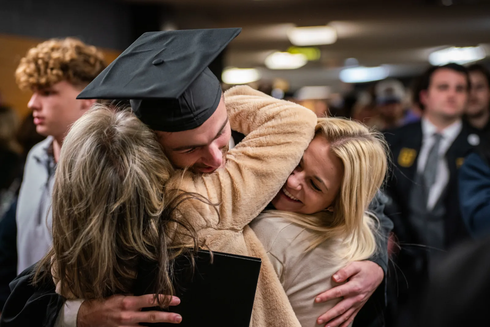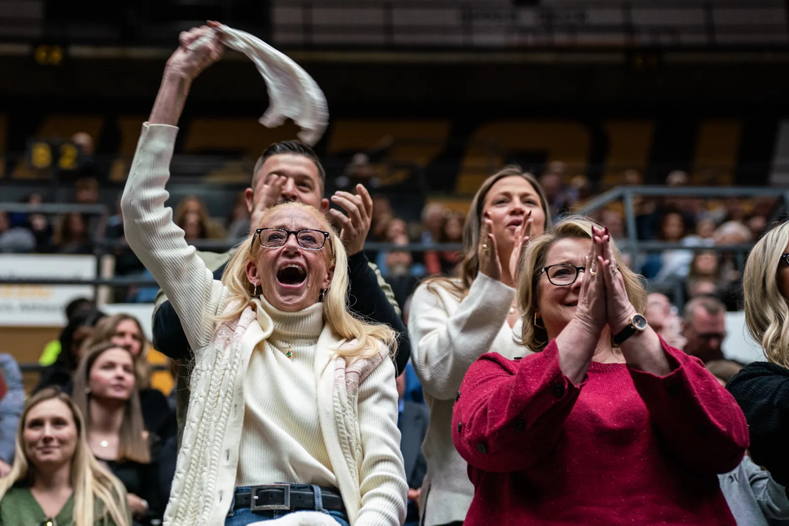 People cheer from the stands at the University of Missouri 2024 Dec. graduation ceremony.