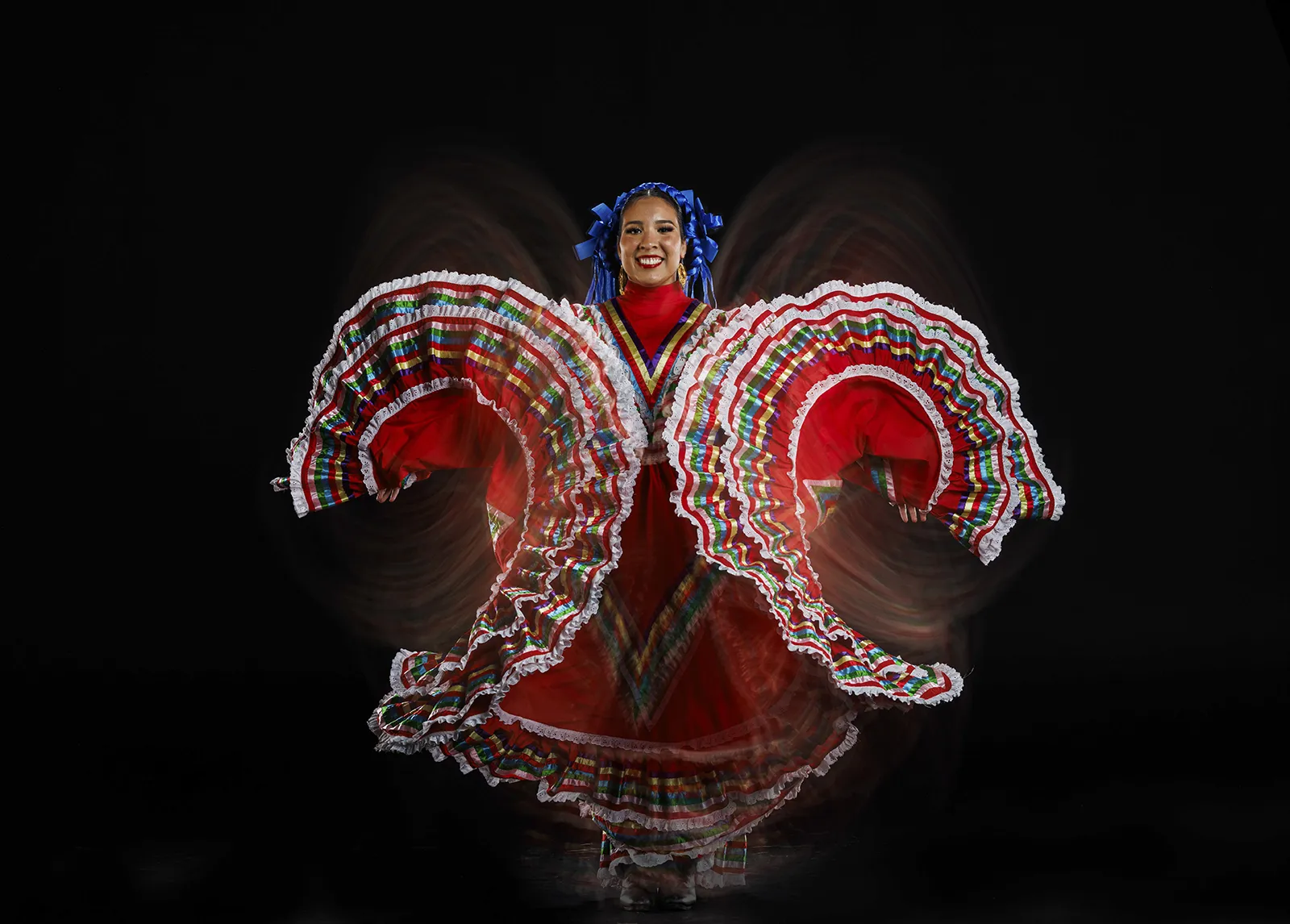 Latin dance was captured with a long exposure to show the flowing movement of her dress.