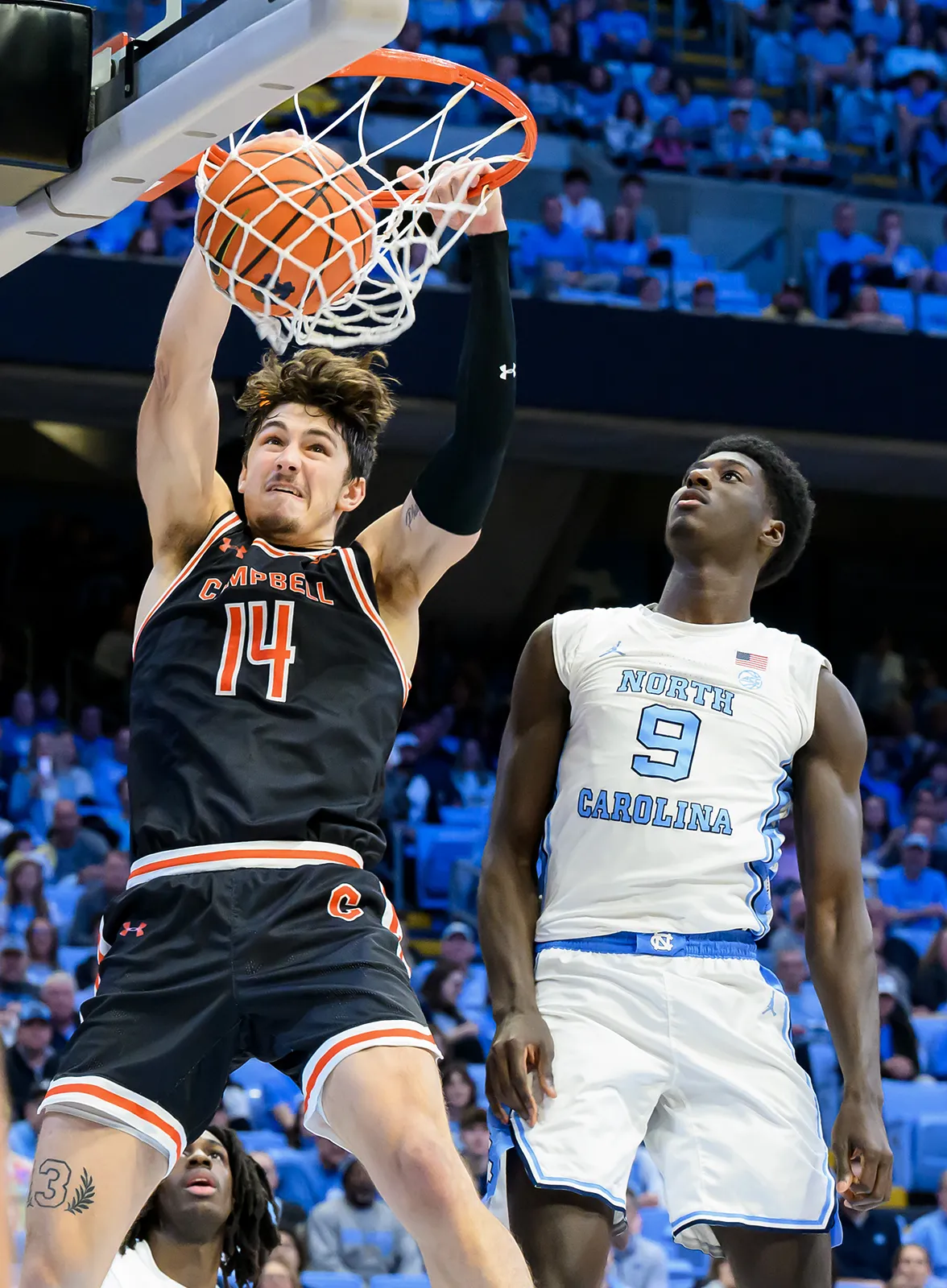 Caleb Zurliene led the Camels with six points in the first half against the Tarheels.