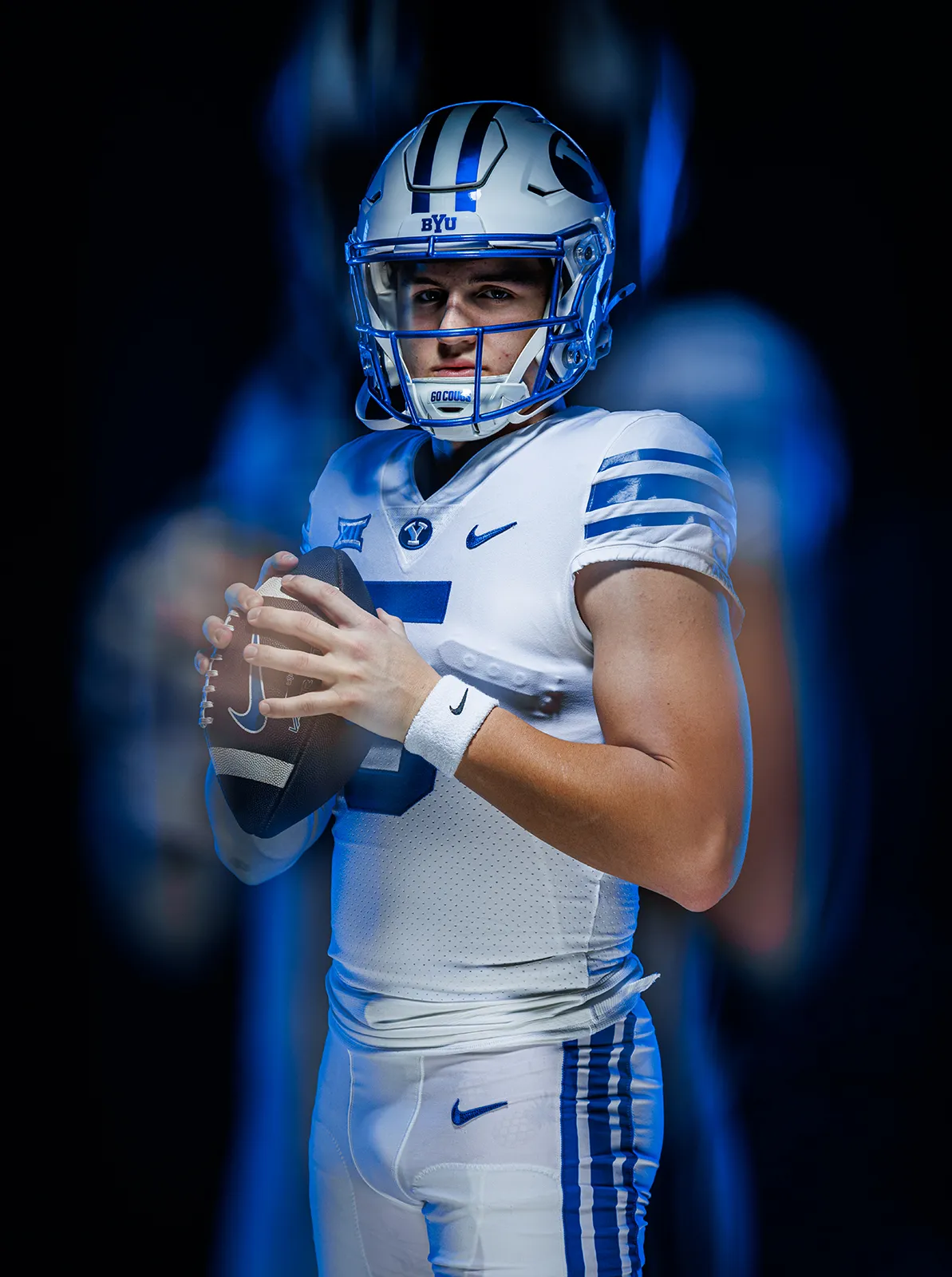 Studio shoot with a football player, 4 light setup, and a slotted filter.