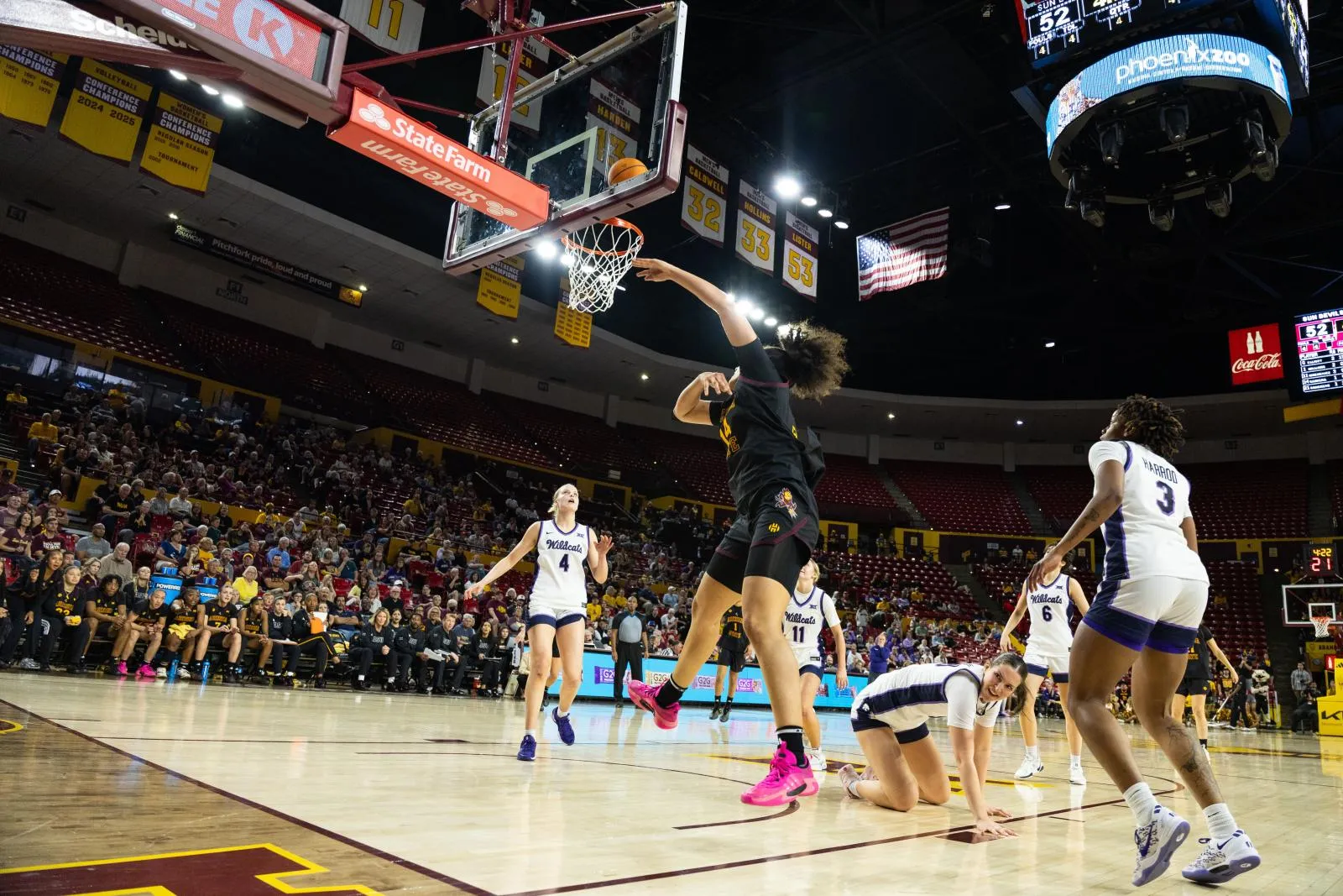 ASU women's basketball forward Heloisa Carrera (14) shoots the ball during the women’s basketball game against Kansas State.