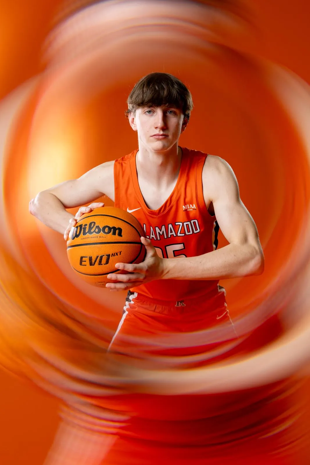 Kalamazoo College men's basketball poses for a portrait.