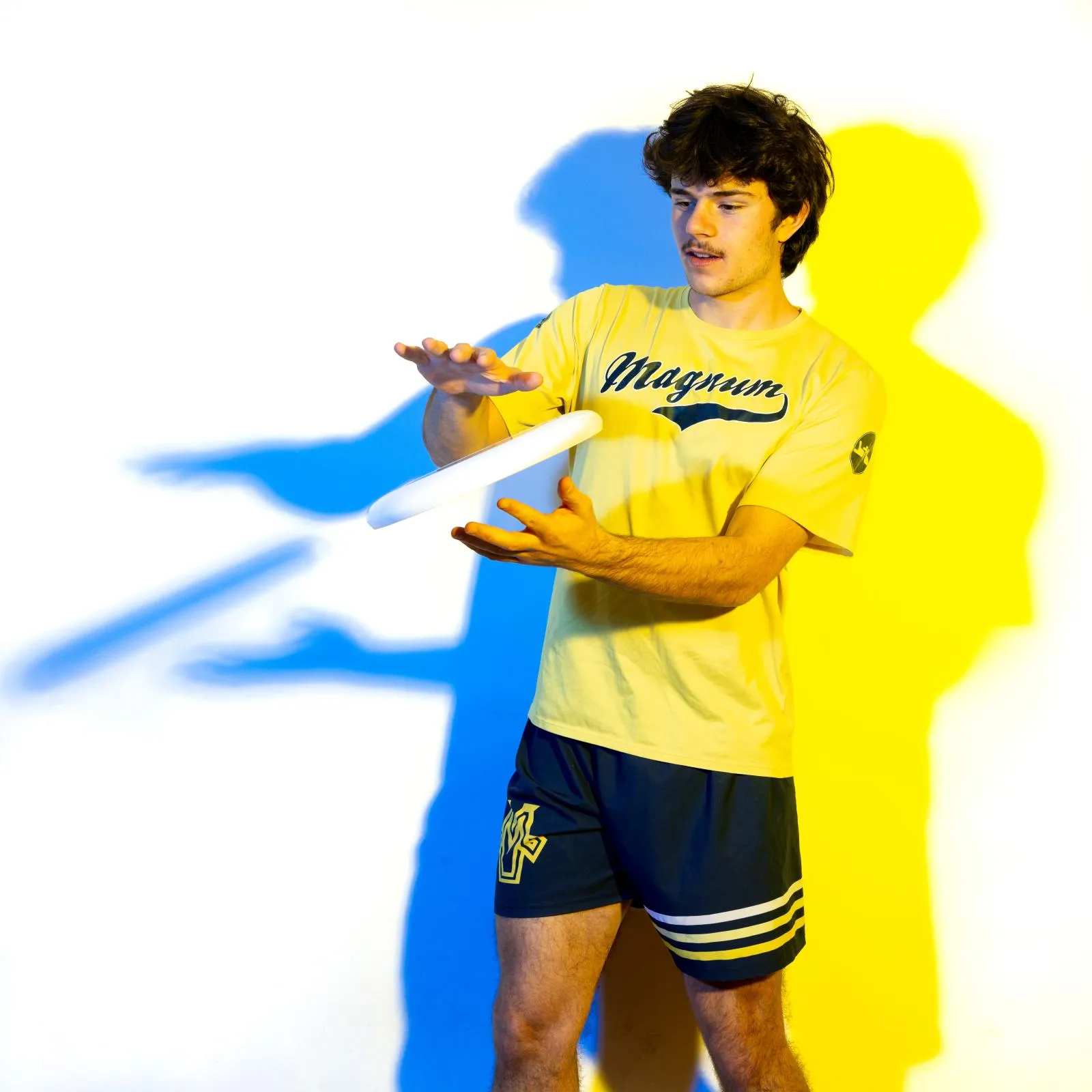 A member of the University of Michigan's Ultimate Frisbee team poses for a portrait.