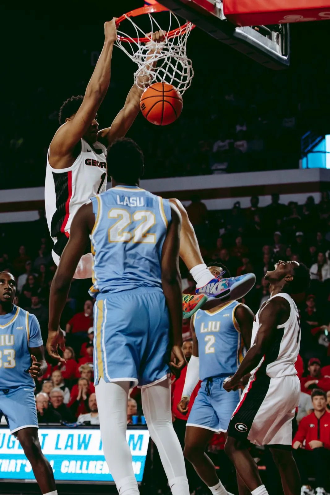 University of Georgia's Smurf Millender defends the net vs Long Island University