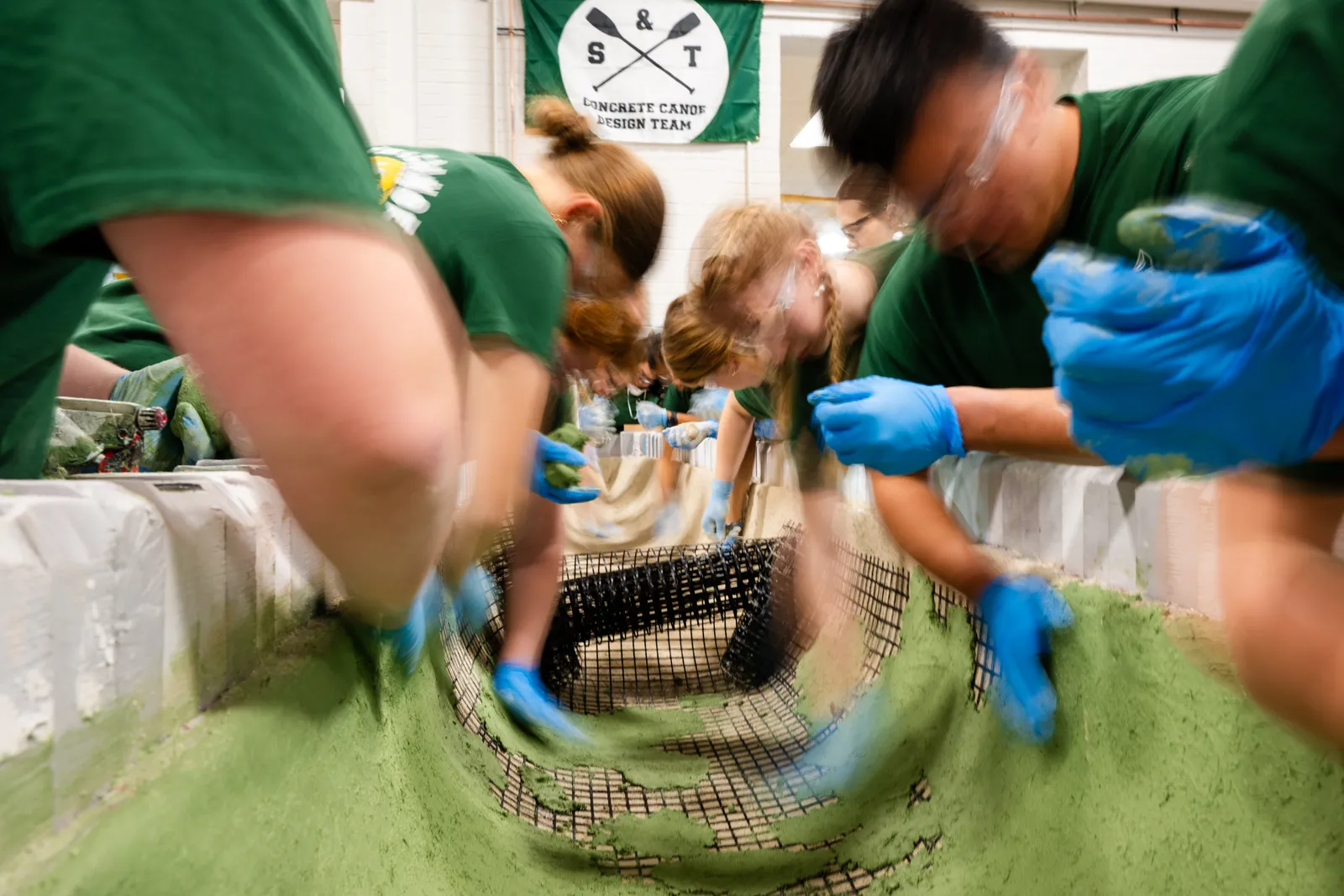 Junior libero Ryan McAleer of the Purdue Boilermakers Volleyball team hugs a teammate while celebrating the team's victory in the NCAA Sweet Sixteen.