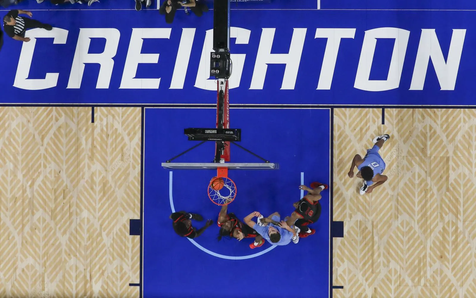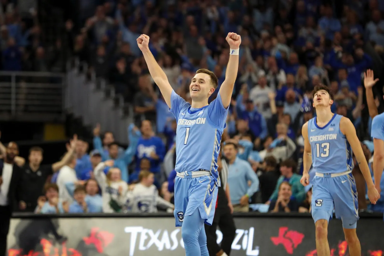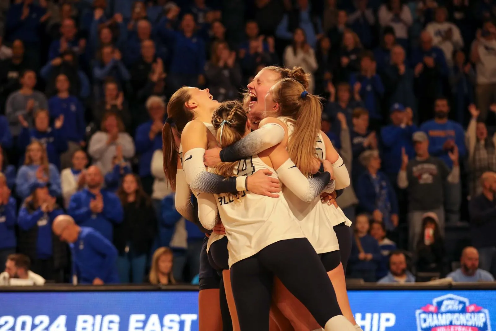 Creighton Women's Volleyball celebrates the match point of the Big East Conference Championship.