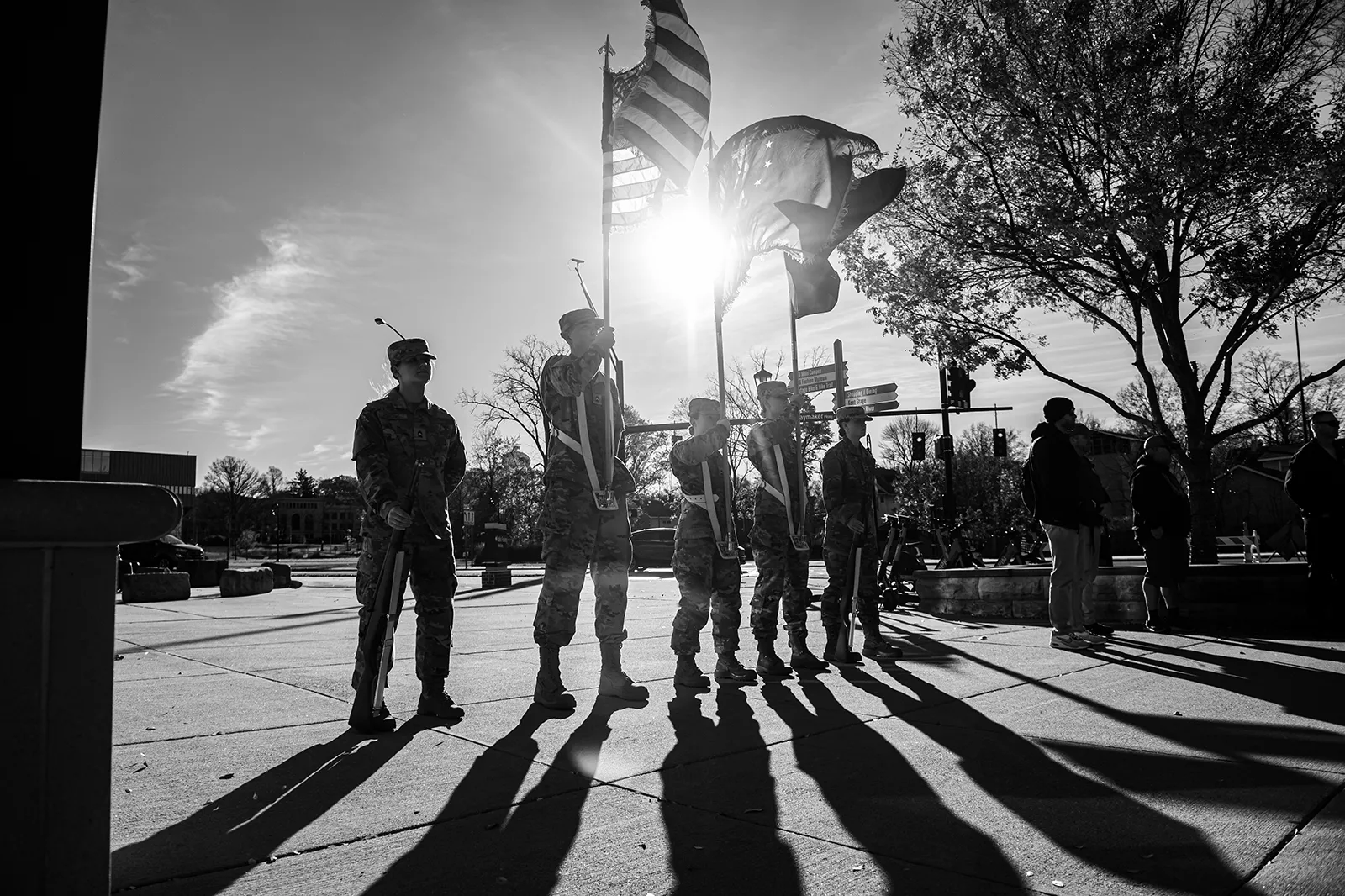 Kent ROTC students present the flags before the start of a Ruck March across campus.