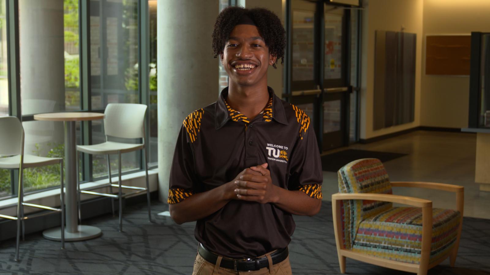 Towson University student and theater major, Josh Allen, reviews the move-in process for new students.