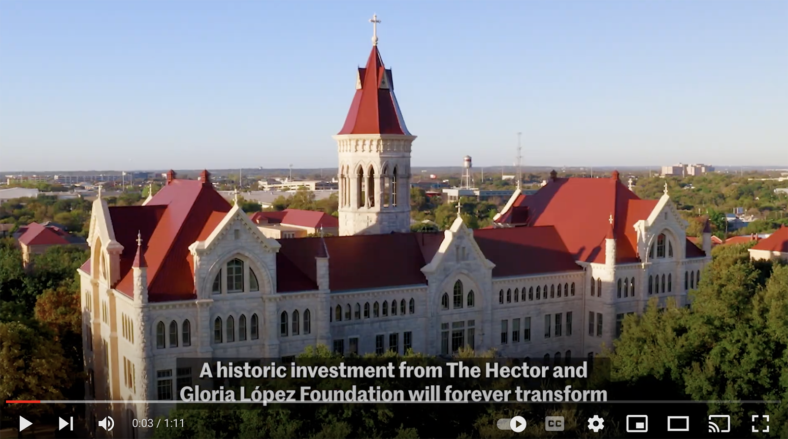 The Hector and Gloria López Foundation awarded a more than $2.1 million grant to St. Edward's University -- benefitting first-generation Latino students. Beginning in Fall 2023, 15 "López Scholars" will receive full tuition assistance, as well as other resources including mentorship, tutoring, study abroad programs, paid internships, leadership development and more. This video was created to spread the word of the historic grant on social.
